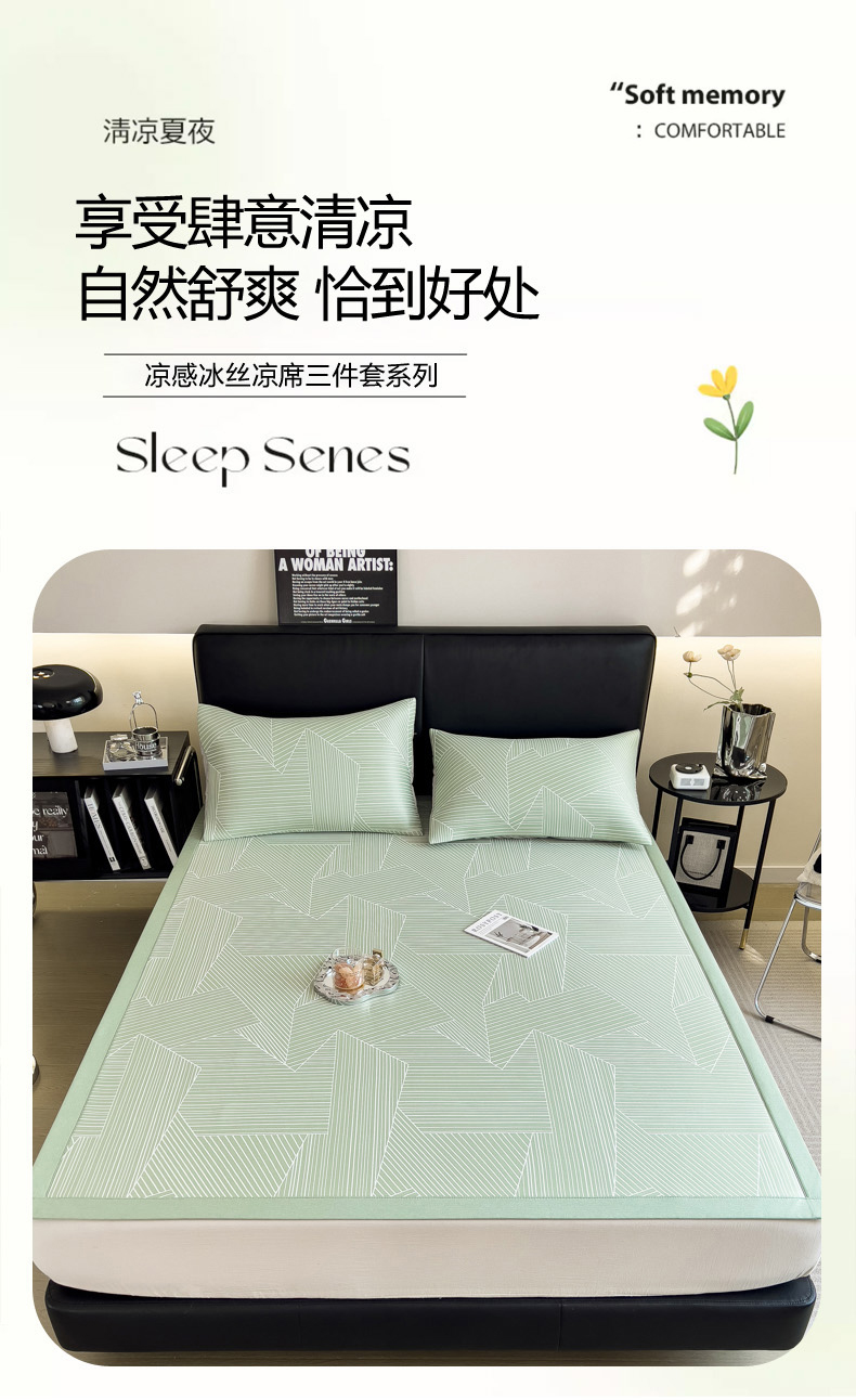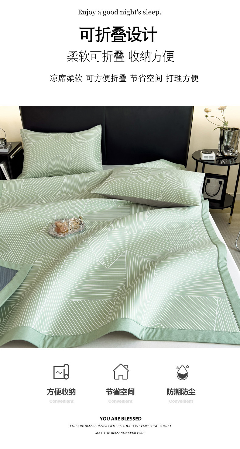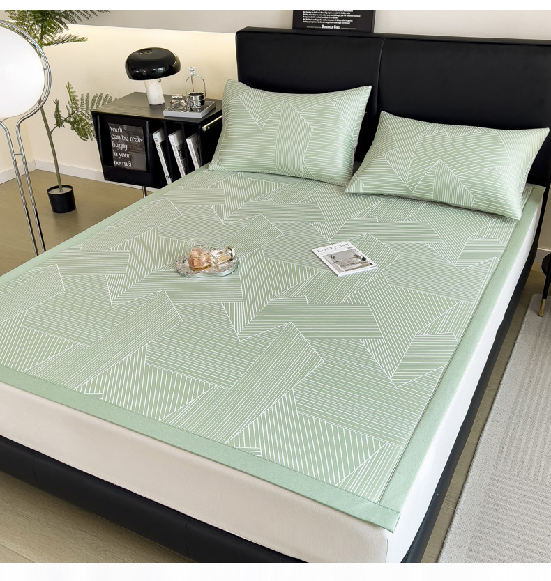 慕尚家纺 2025春夏新款凉感冰丝提花凉席三件套 提花席 直线绿