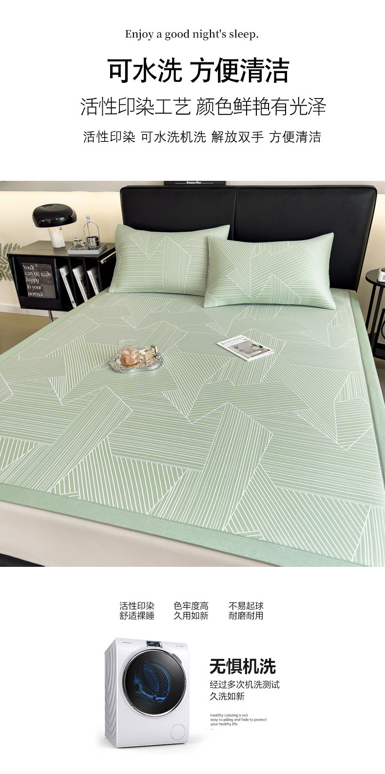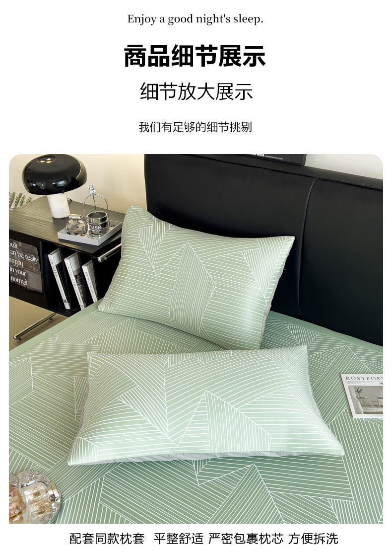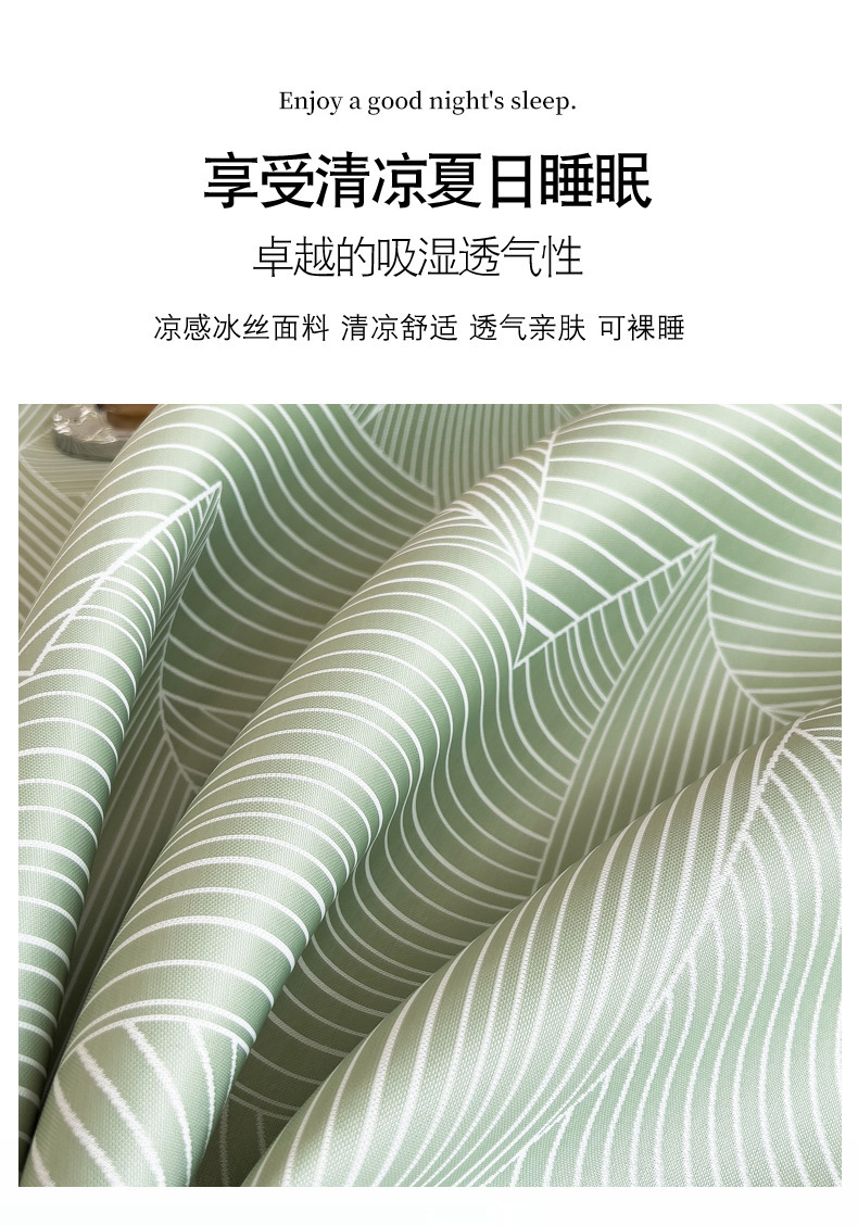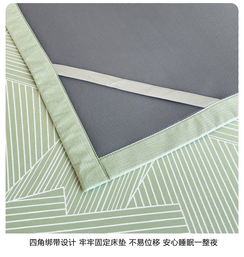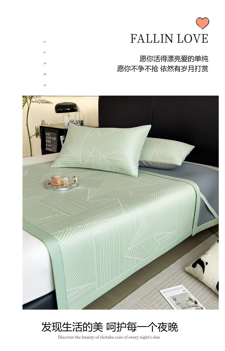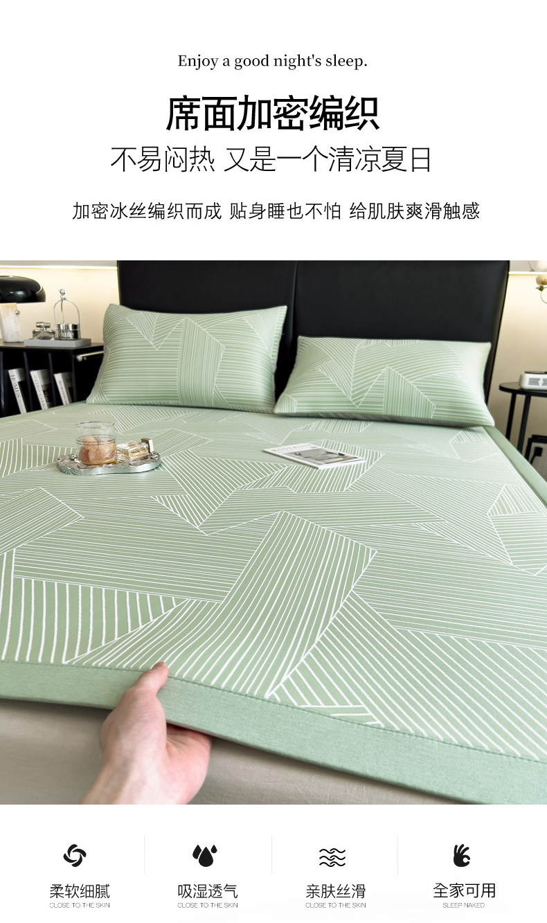 商品名称:慕尚家纺 2025春夏新款凉感冰丝提花凉席三件套 提花席 直线绿