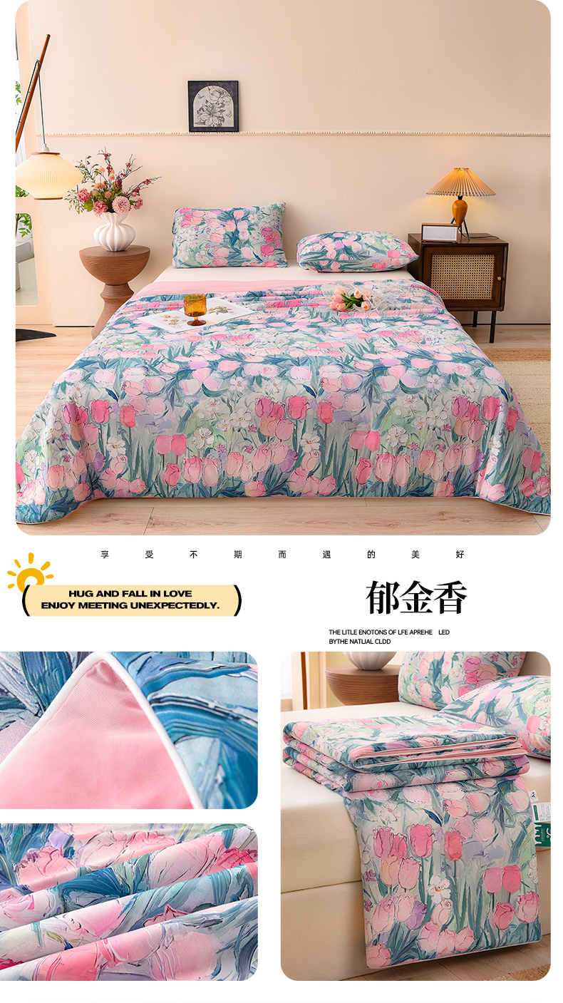 商品名称:曼尼 2025新款印花凉感丝夏被夏凉被 郁金香
