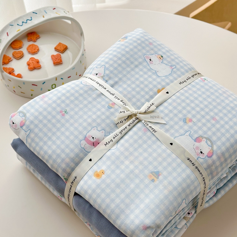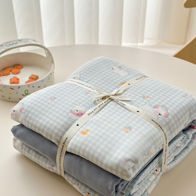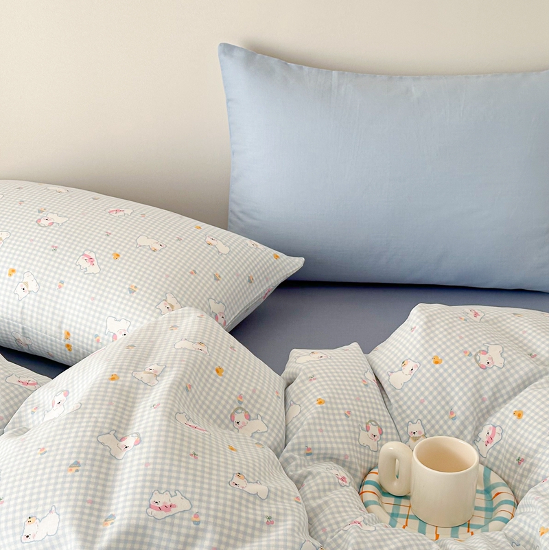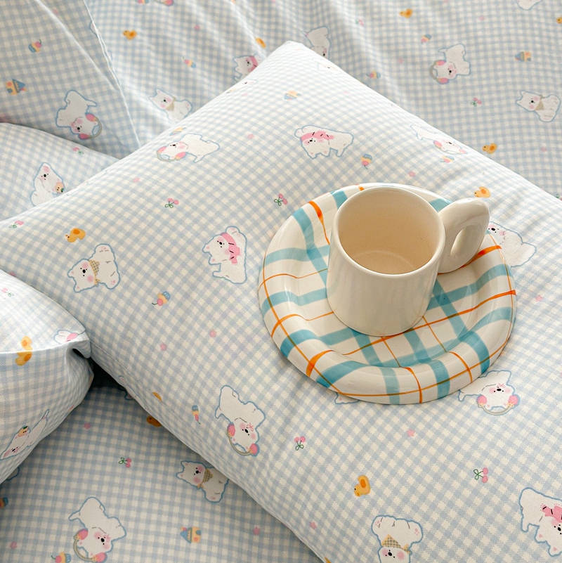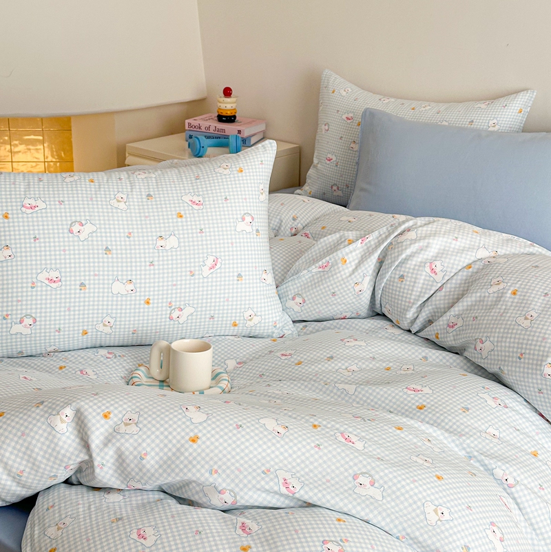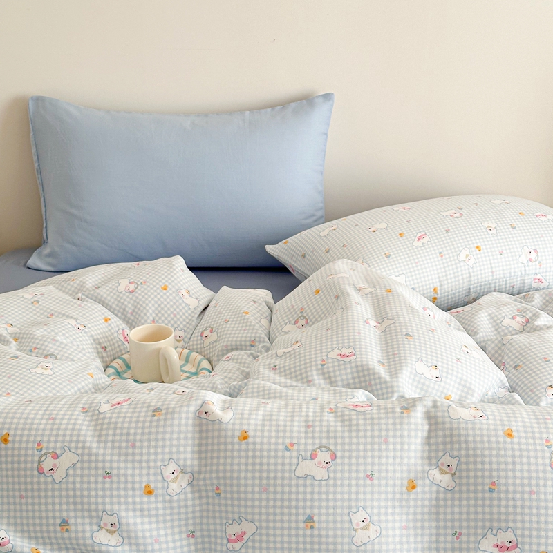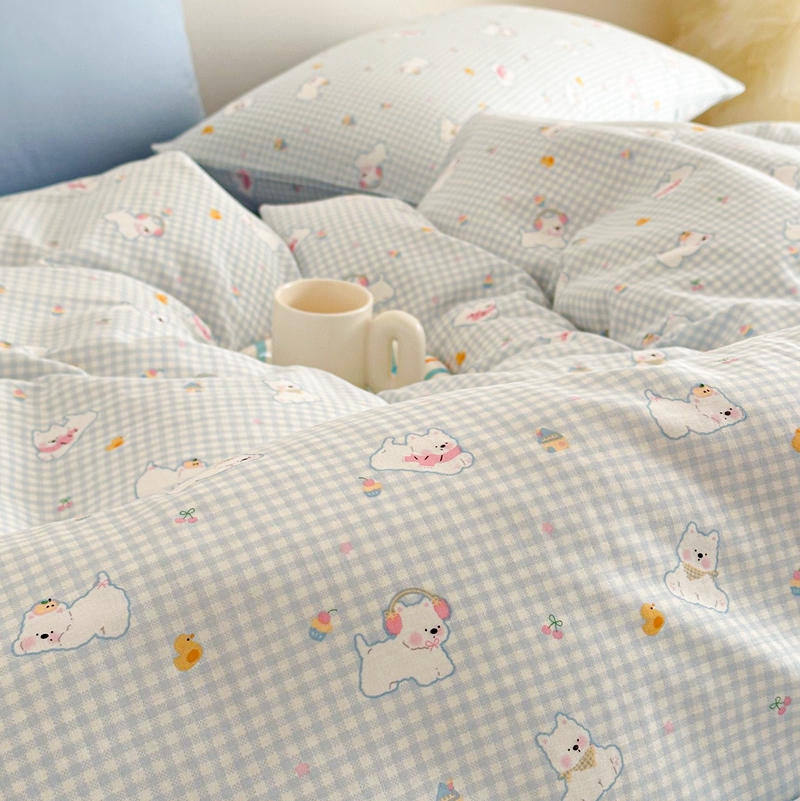 商品名称:桃喜 2025新款春夏双层纱卡通系列四件套 格子狗兰
