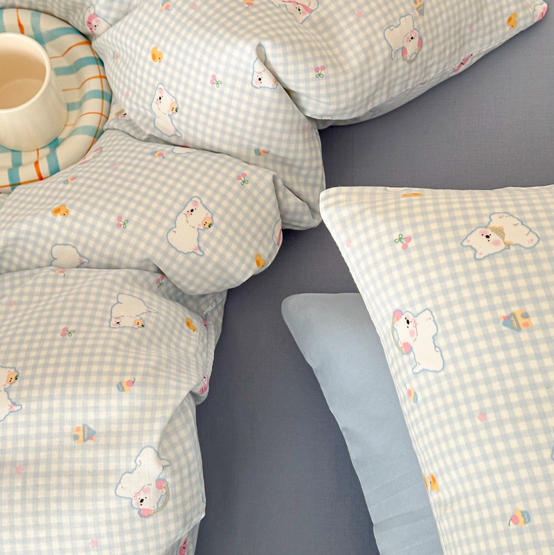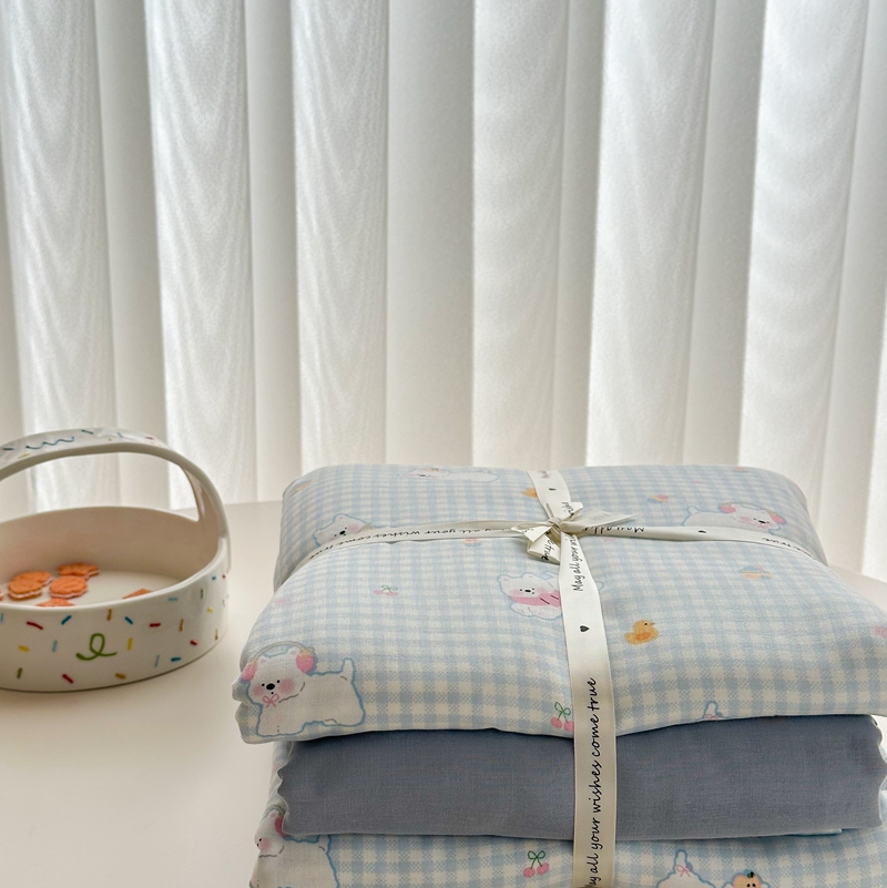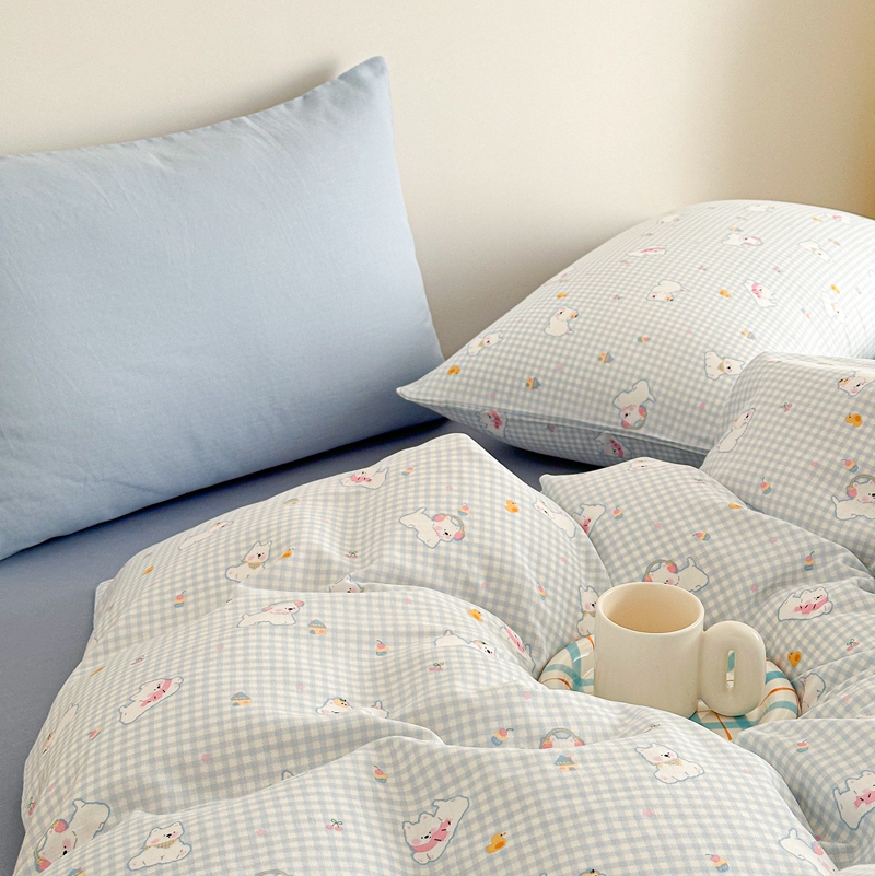桃喜 2025新款春夏双层纱卡通系列四件套 格子狗兰