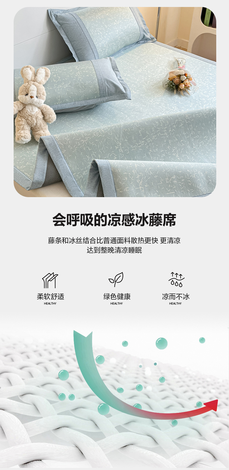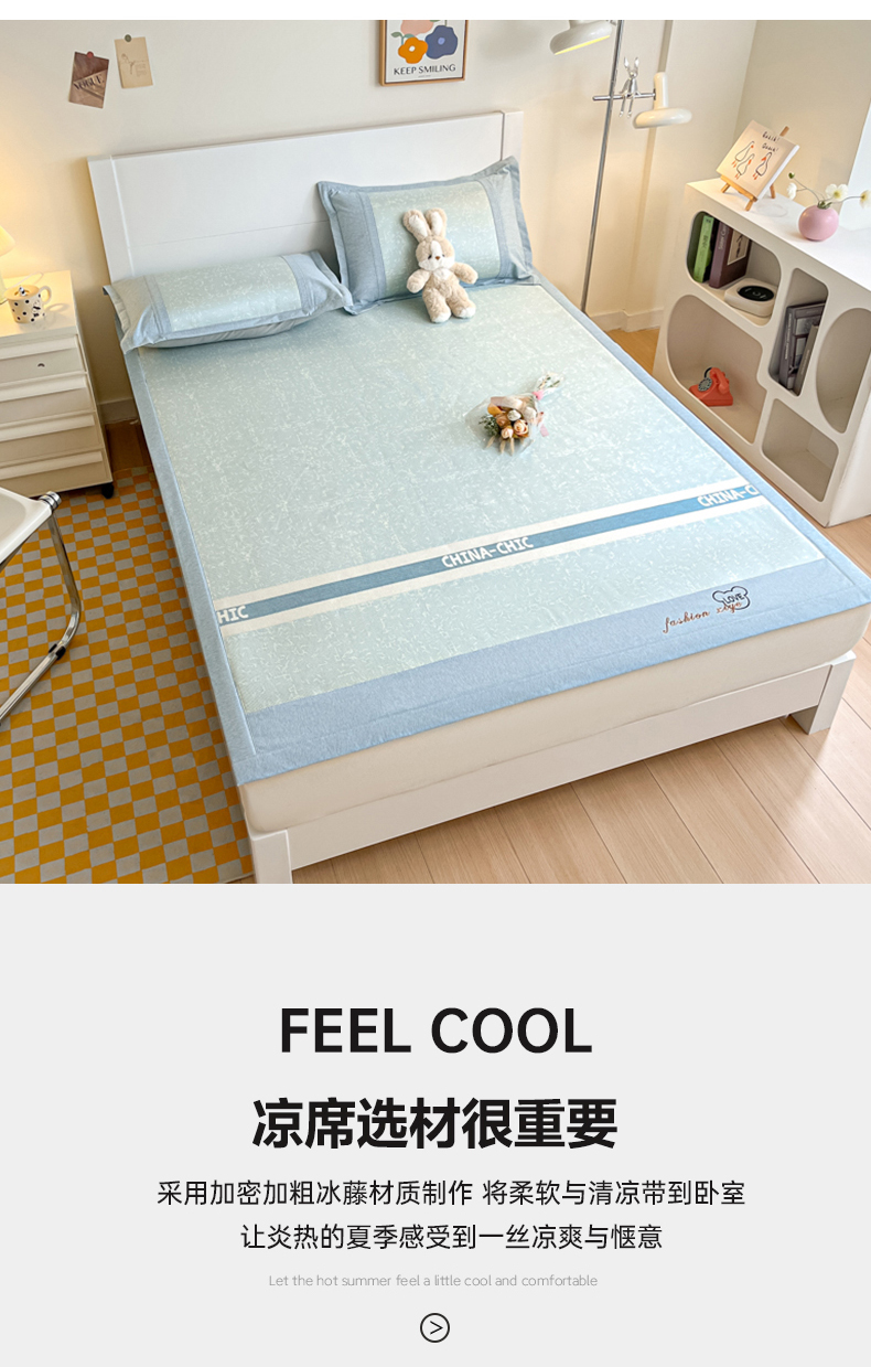 (总)2025新款印花冰藤凉席-学生款,杯具熊,冰块蓝,粉熊猫,可哒鸭,萝卜兔,太空人,小兰花,小企鹅