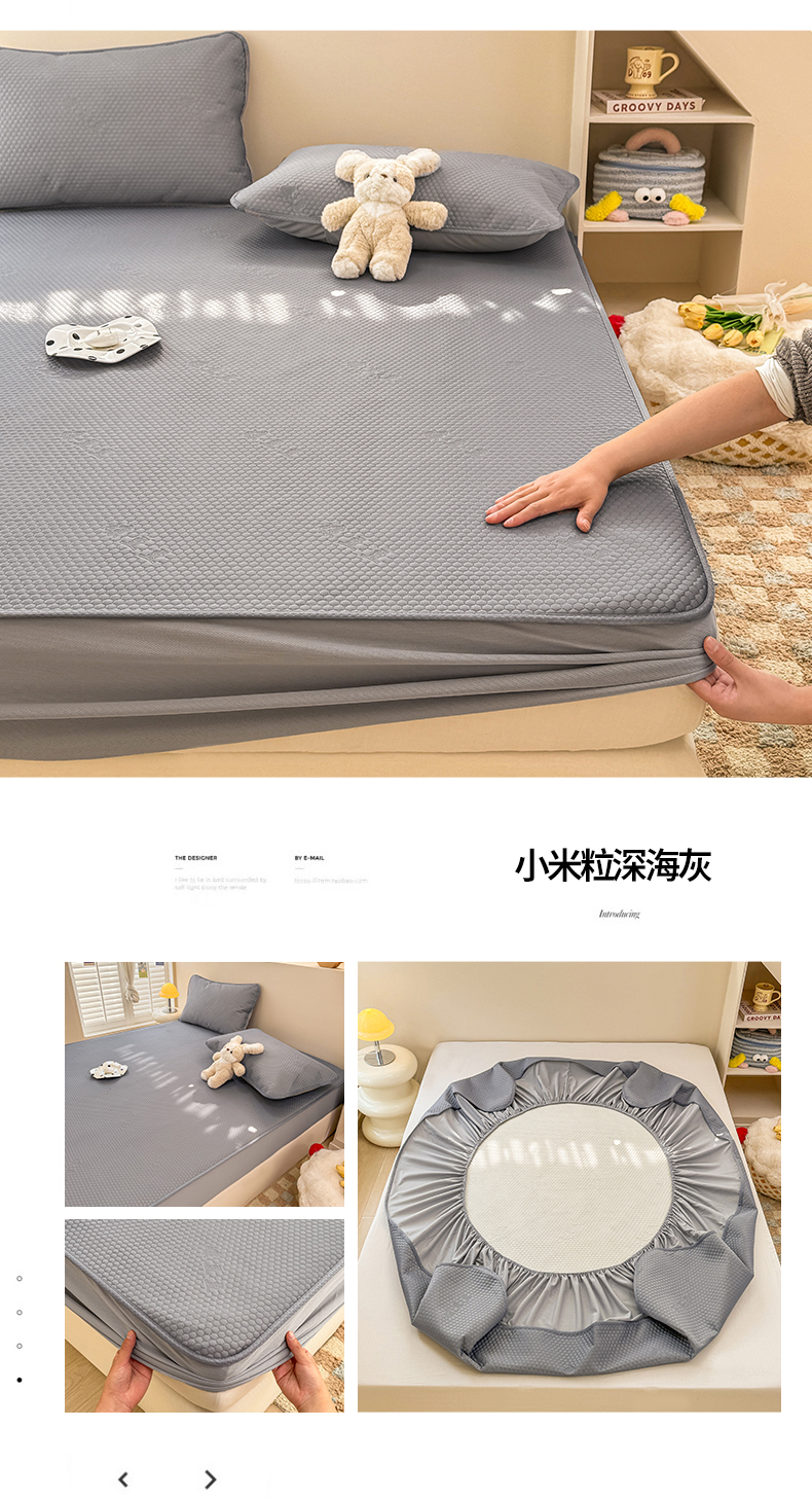 • 91家纺网 家纺一手货源 找家纺 阿亮家居 2025新款凉席凉豆豆单包边可水席单凉席三件套冰豆豆席 小米粒深海灰床笠款