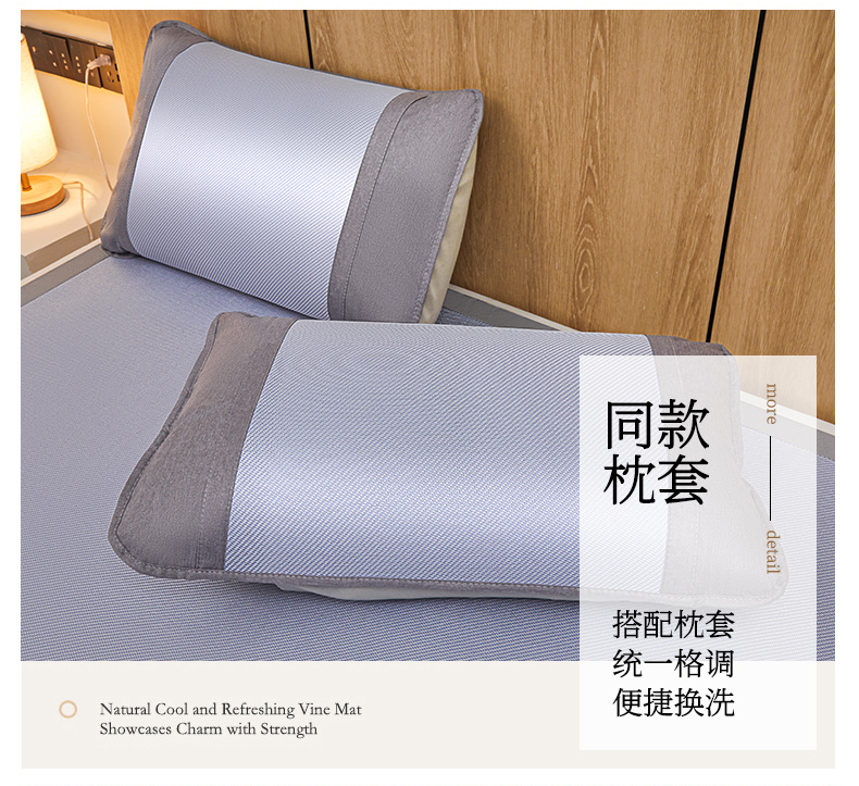 商品名称:阿亮家居 2025新款冰藤席凉席三件套包边抗菌刺绣款冰藤凉席 蓝紫色-床笠款