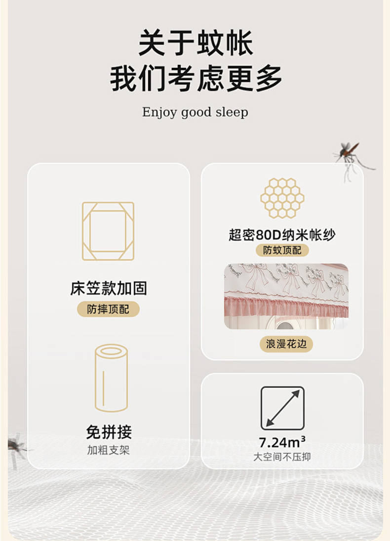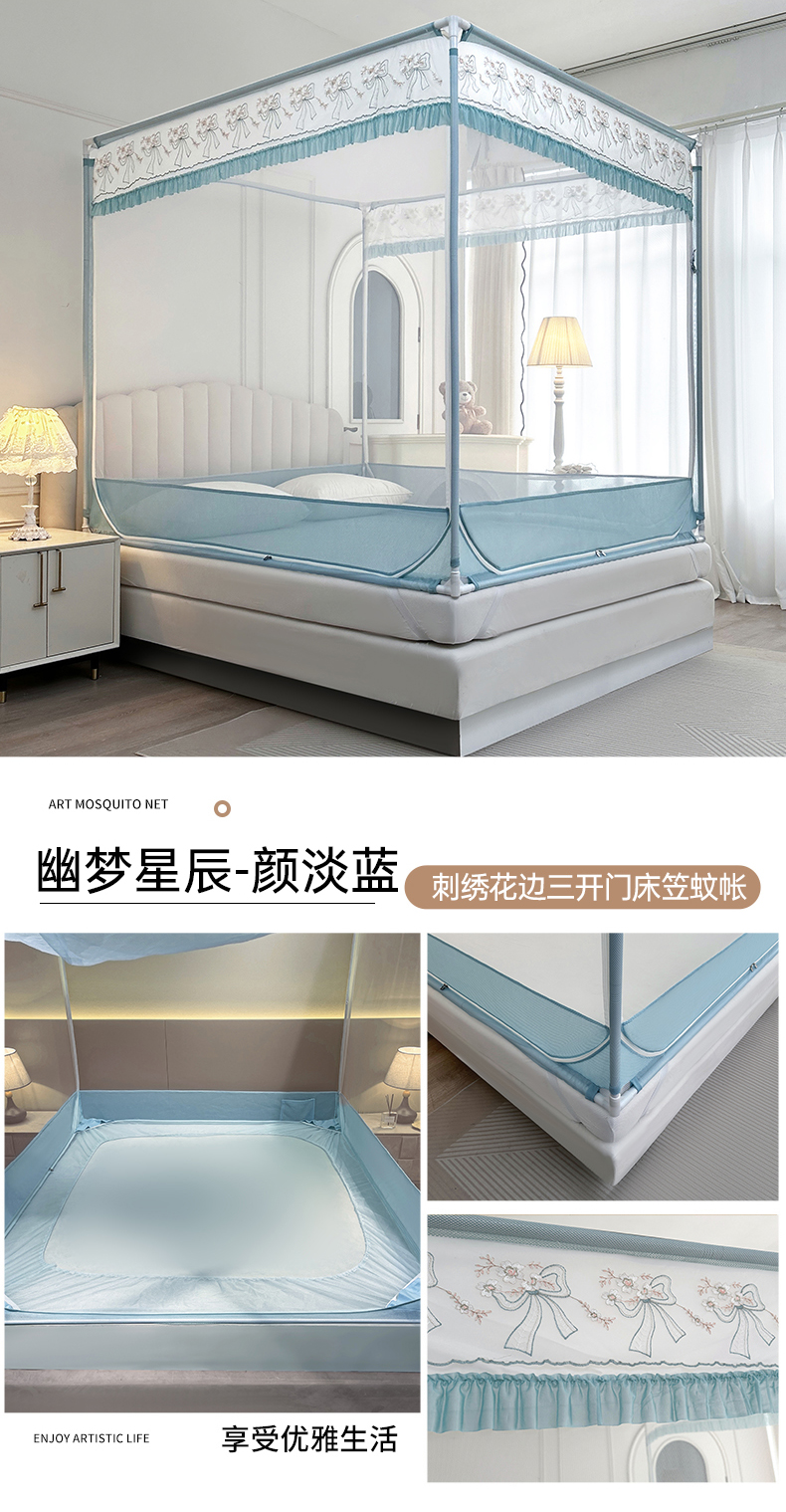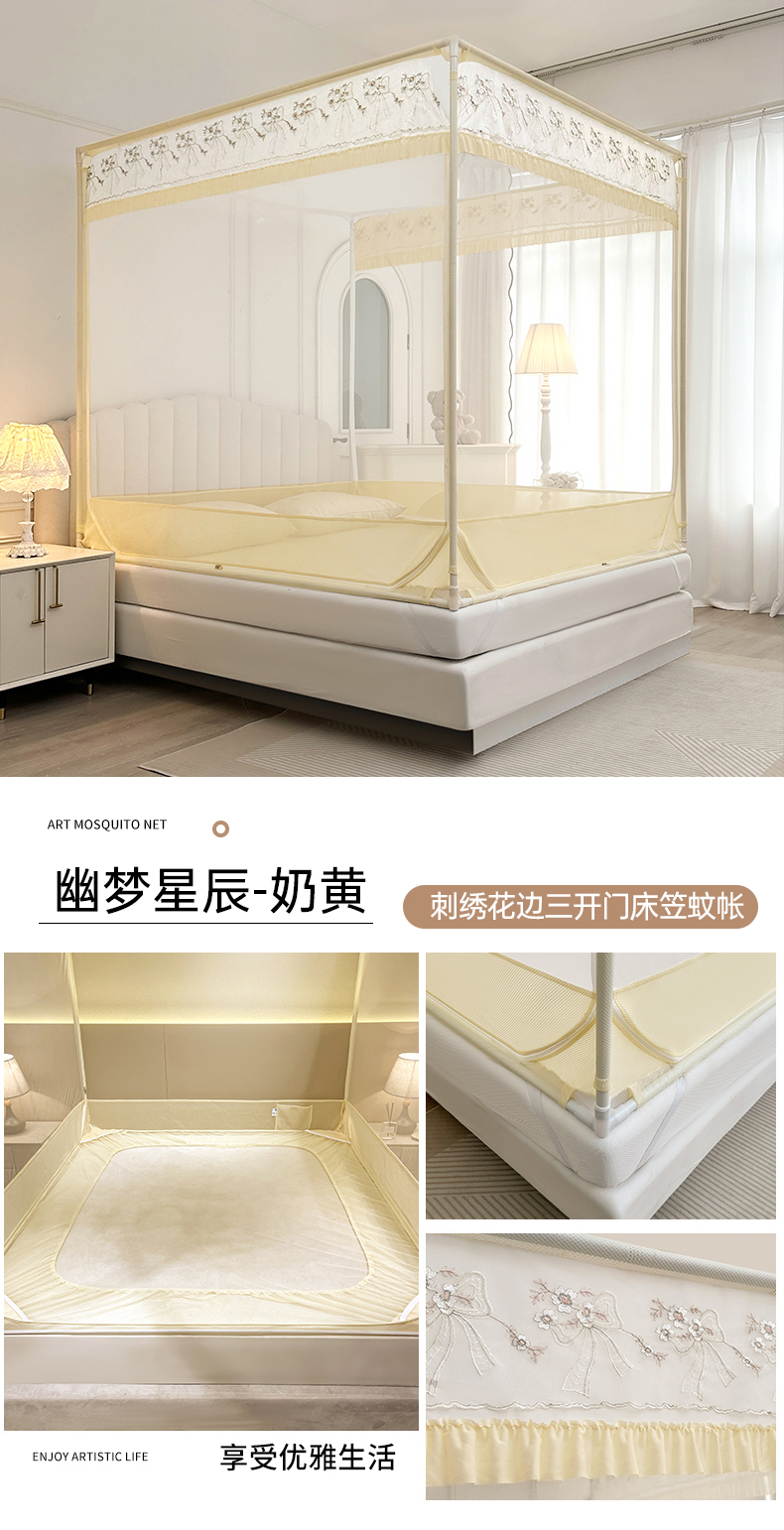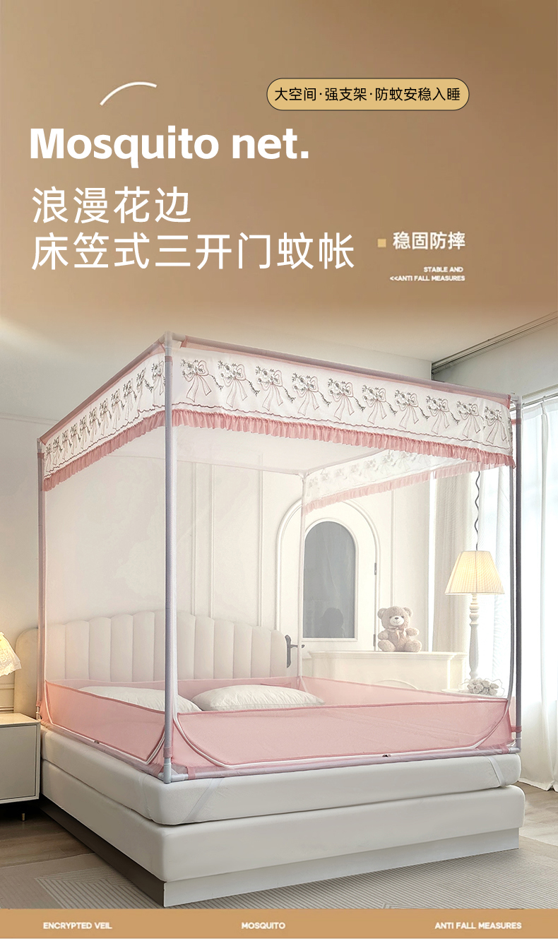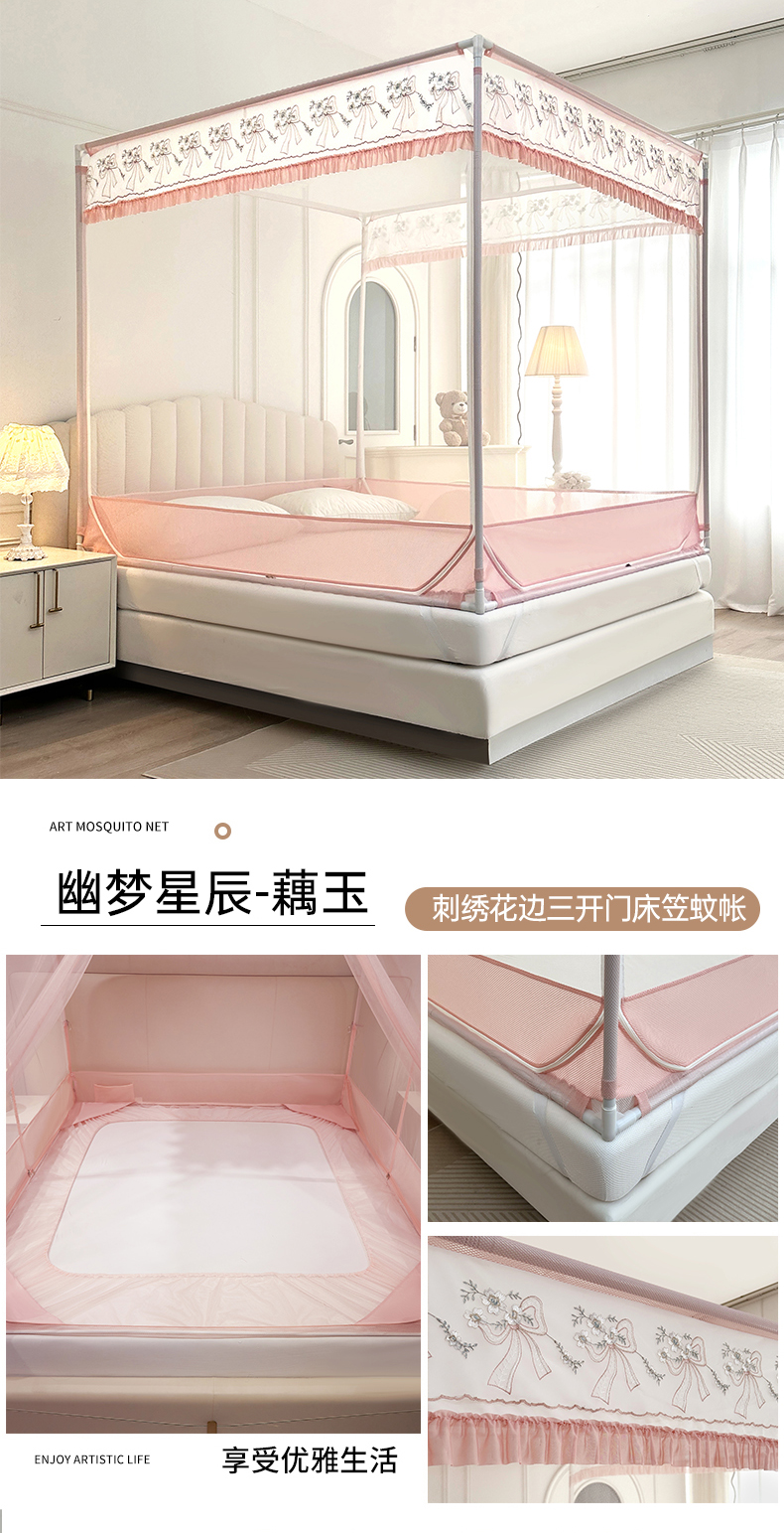 当前位置: 91家纺网 > 商品网购 > 床上用品 > 蚊帐 > 吊顶蚊帐 > 2025新款双层花边全包围床笠款三开门蚊帐-幽梦星辰 藕玉