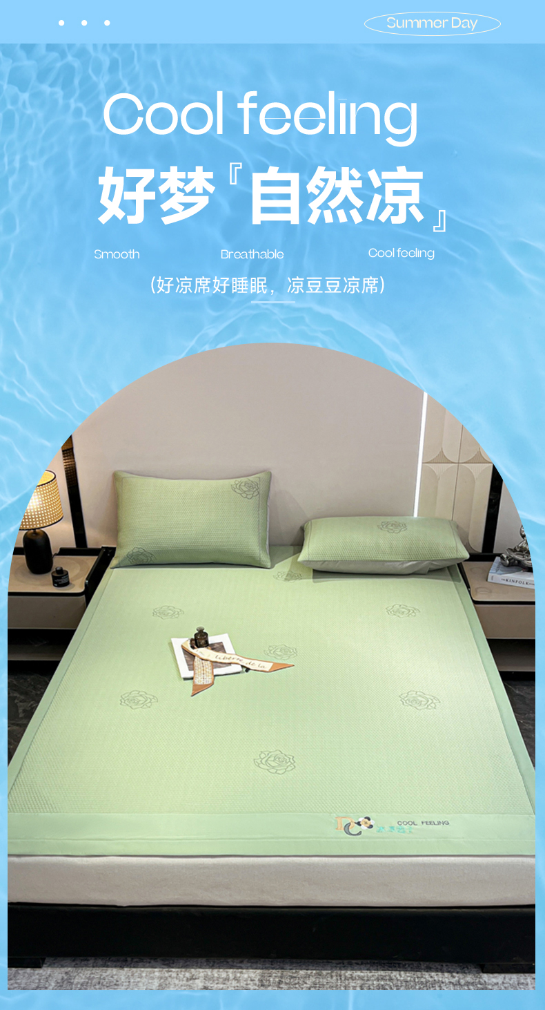 商品名称:阿亮家居 2025新款刺绣款凉豆豆凉席 凉豆豆-玫瑰绿色