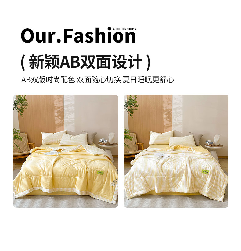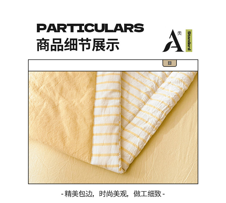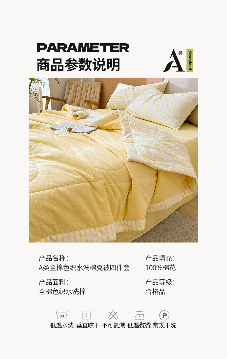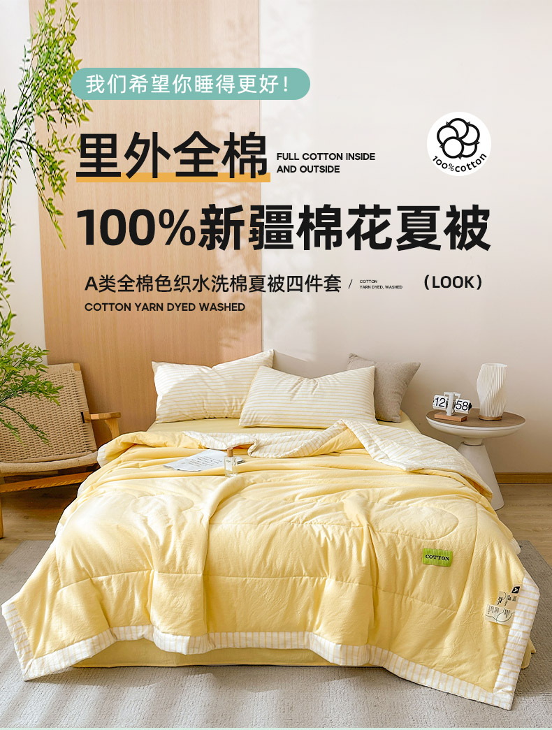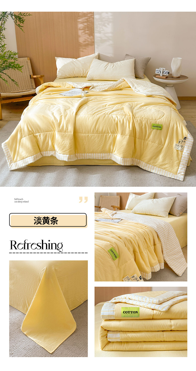 • 91家纺网 家纺一手货源 找家纺 熙宴家纺 2025新款全棉色织水洗棉棉花夏被四件套 淡黄条