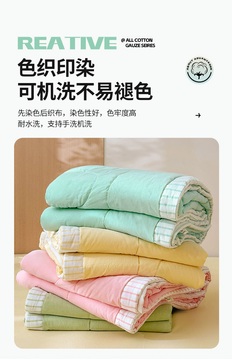 (总)熙宴家纺 2025新款水洗棉嵌绳款100%新疆棉花被,豆绿,粉玉,石灰,雾蓝