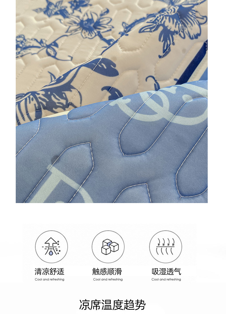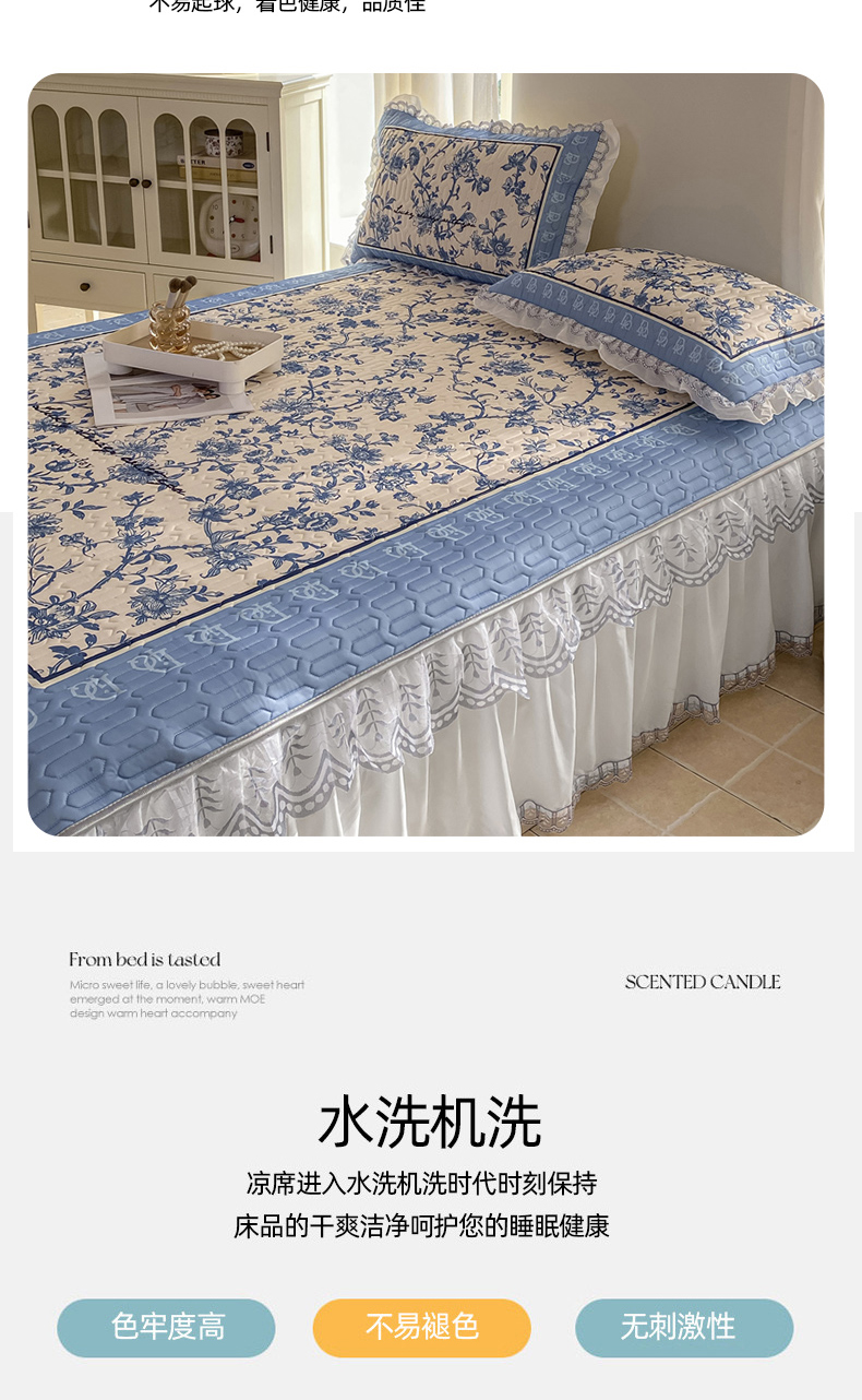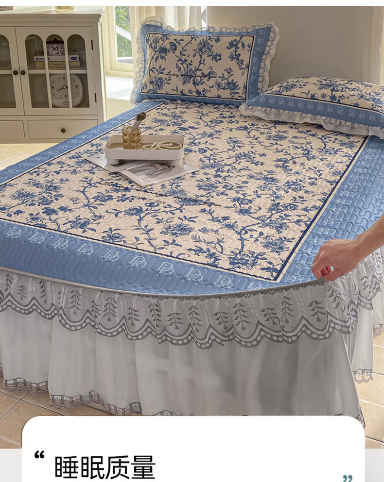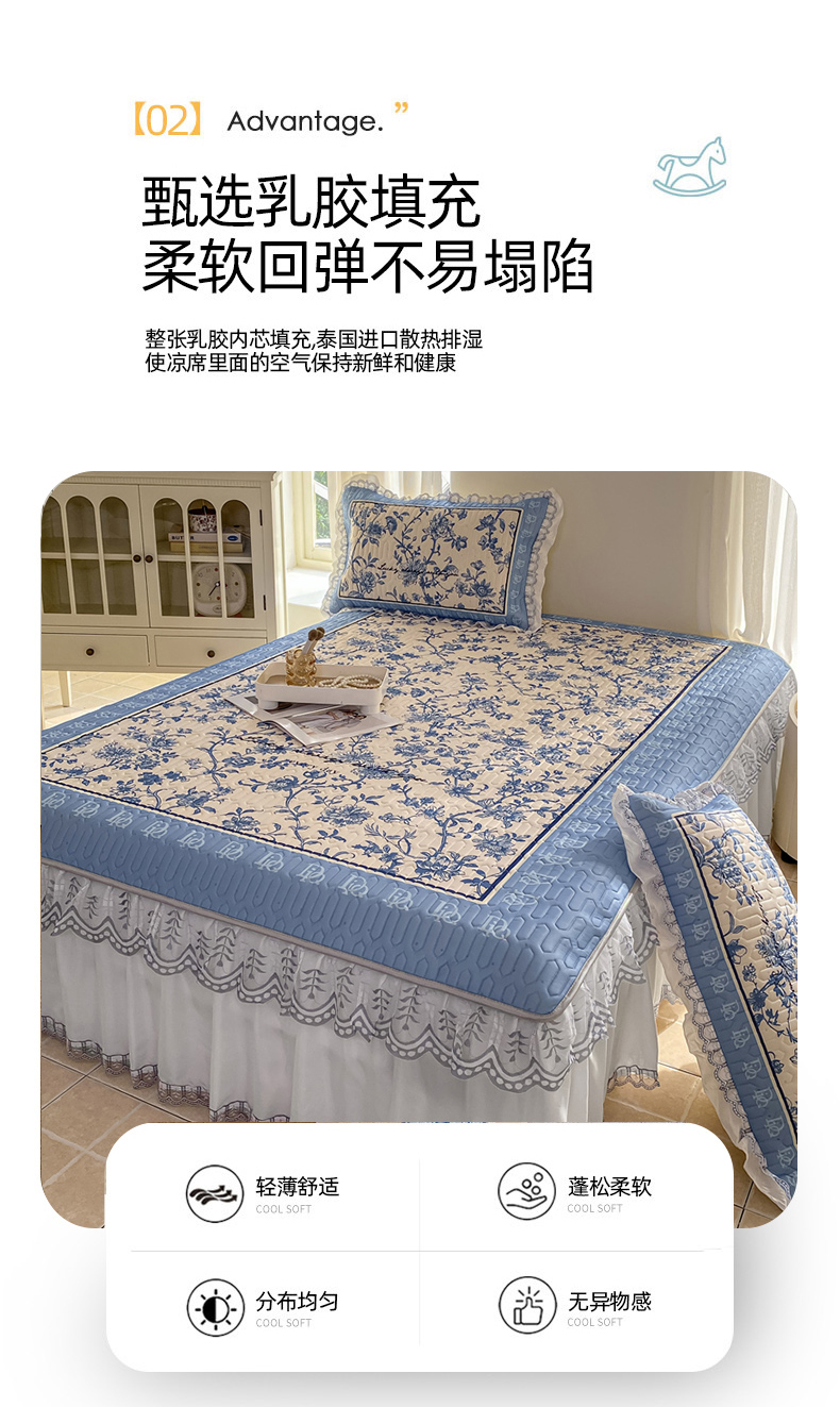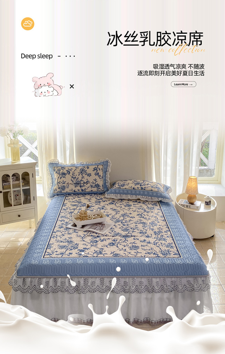 商品名称:麋兔 2025新款冰丝床裙乳胶凉席席子 花幽兰