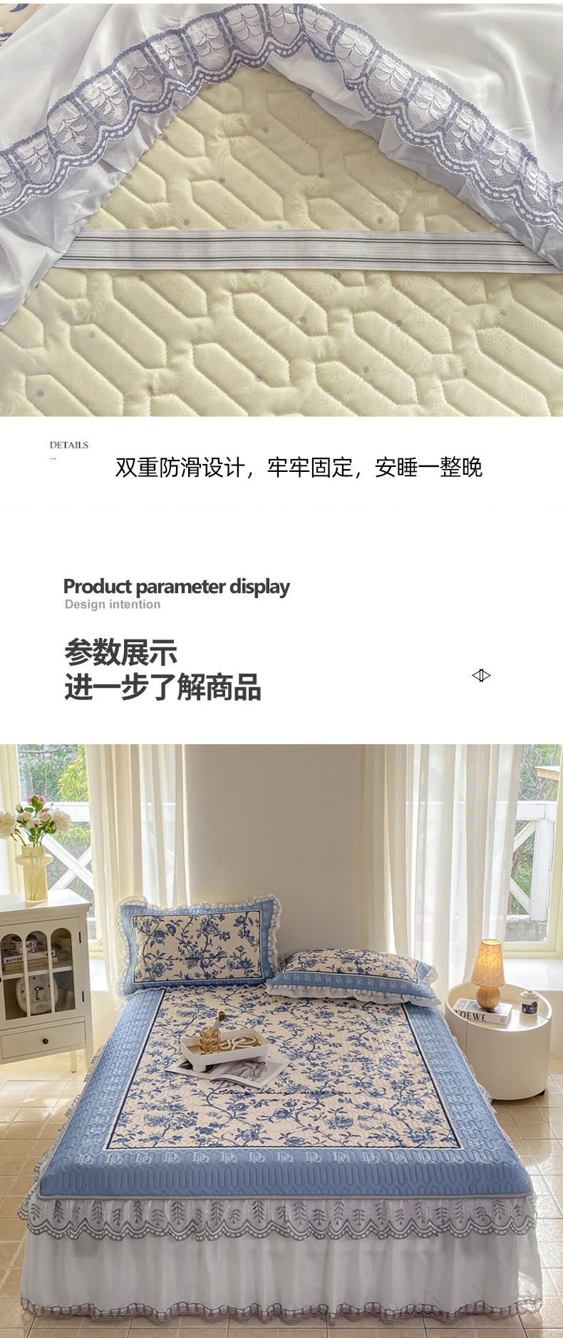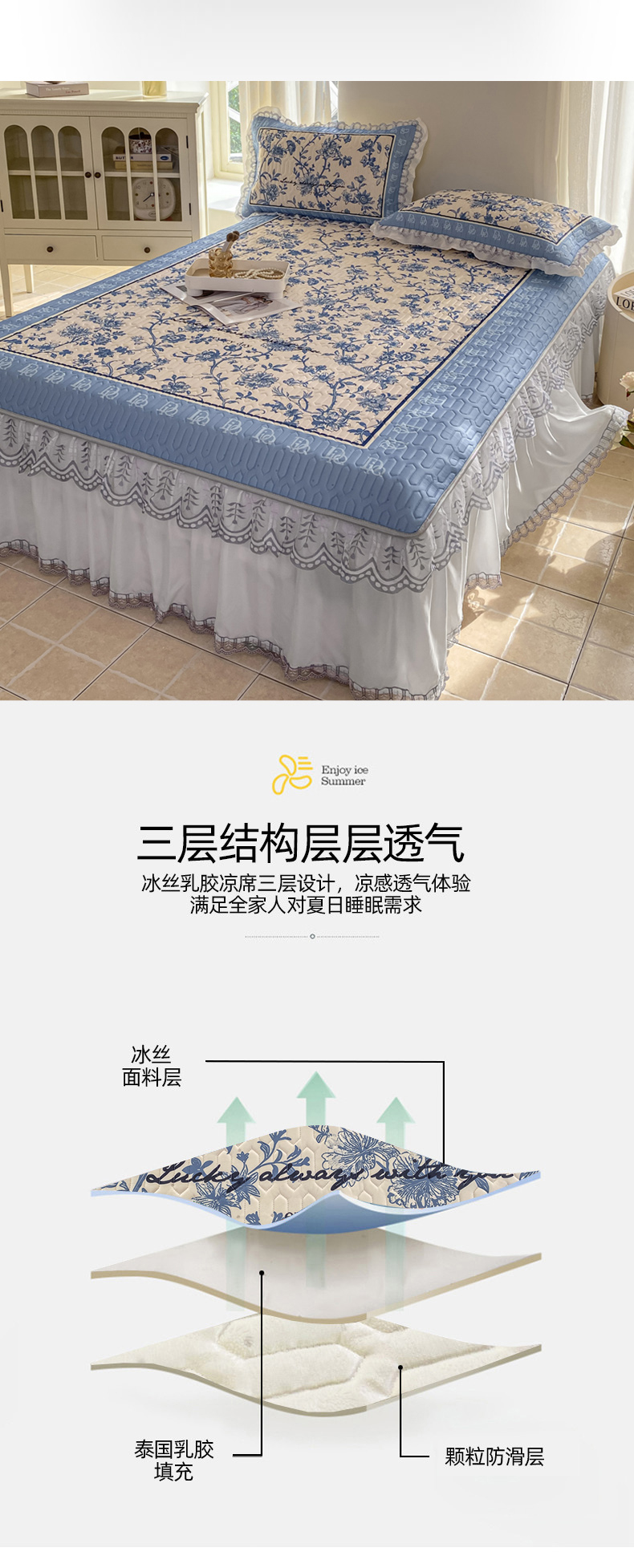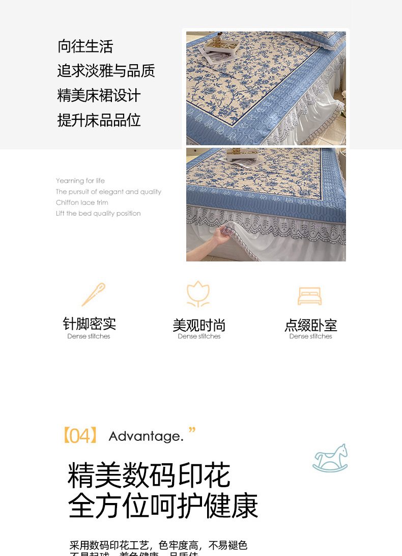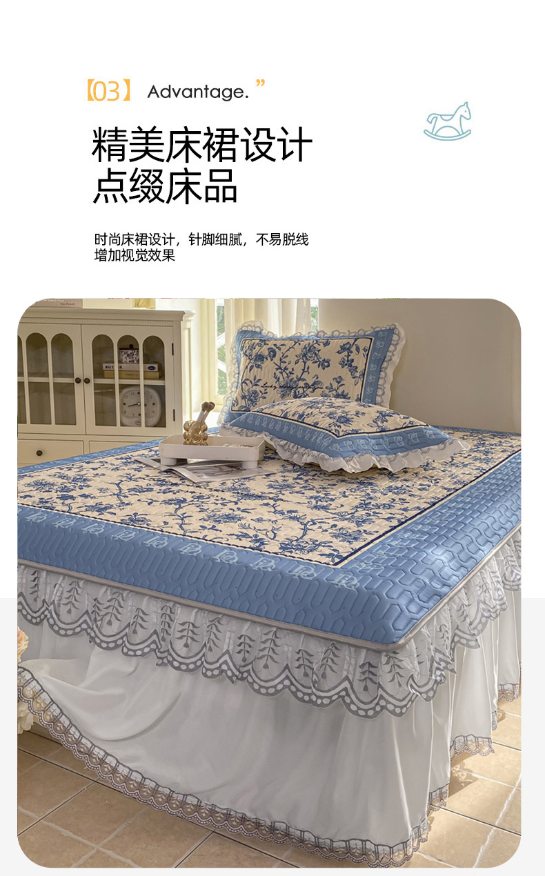 商品名称:麋兔 2025新款冰丝床裙乳胶凉席席子 花幽兰