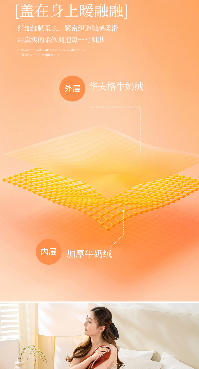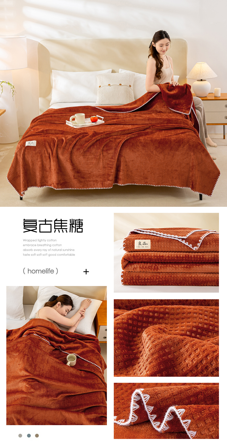 恋人优选 2025新款华芙绒双层复合毯毛毯毯子 复古焦糖