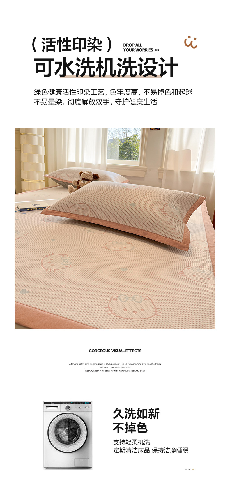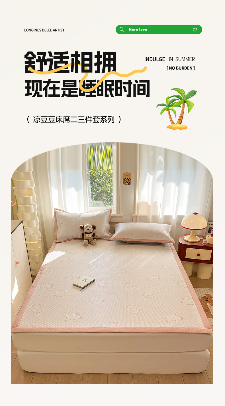 商品名称:雅居纺家纺 2025春夏新款A类加厚三明治底提花凉感席床席款 蝴蝶结猫咪