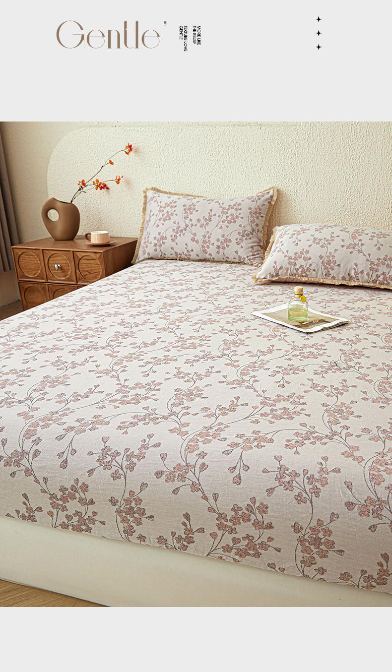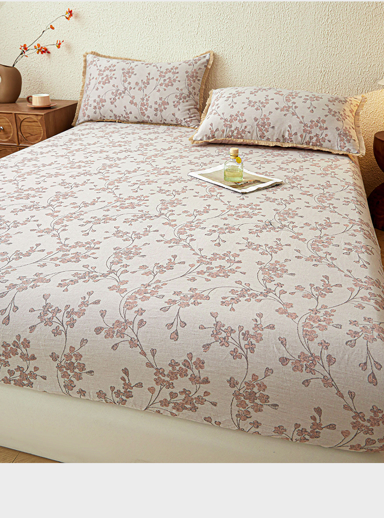 极简 2025新款全棉三层纱提花床笠 波西娅柔粉
