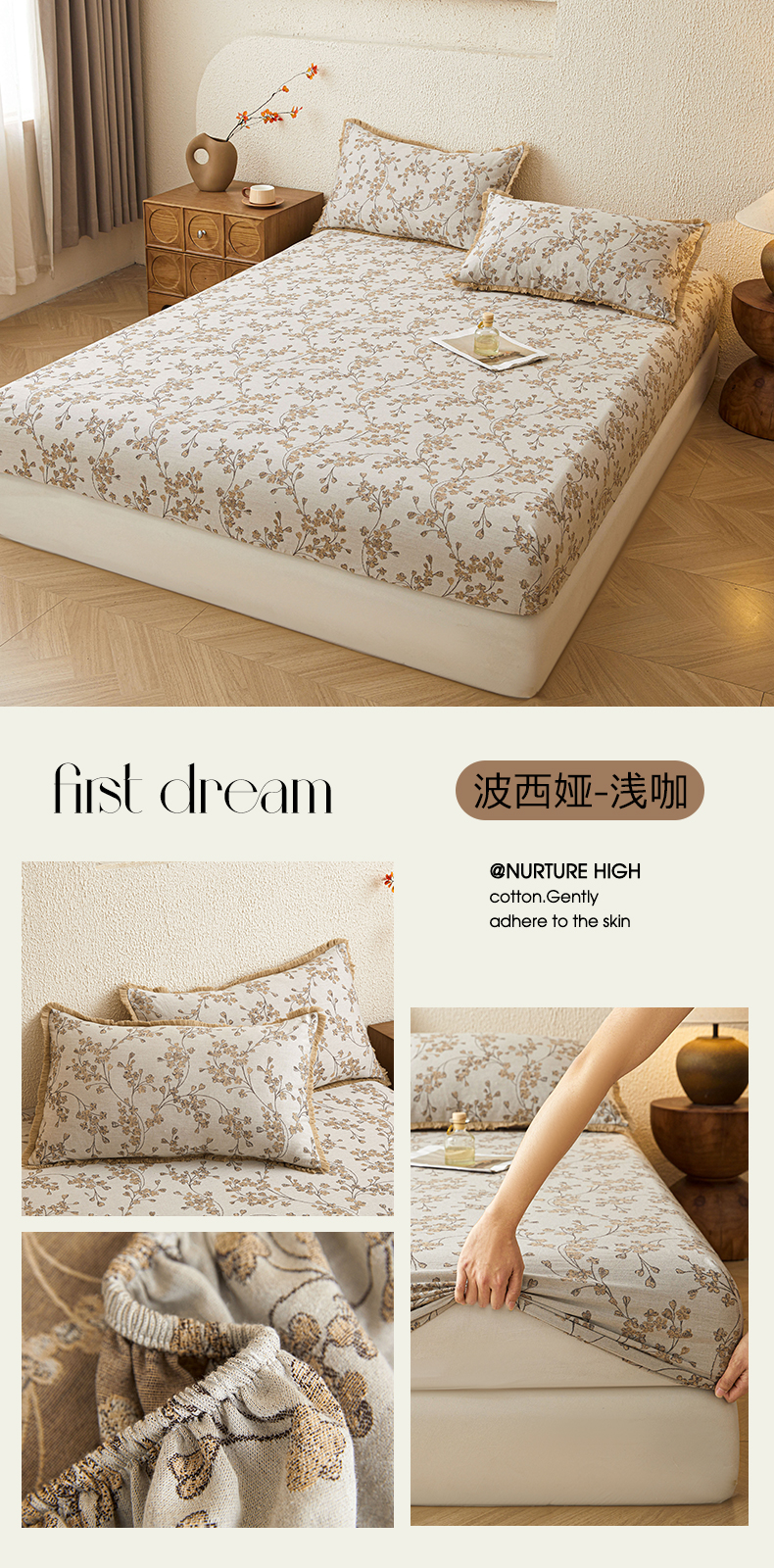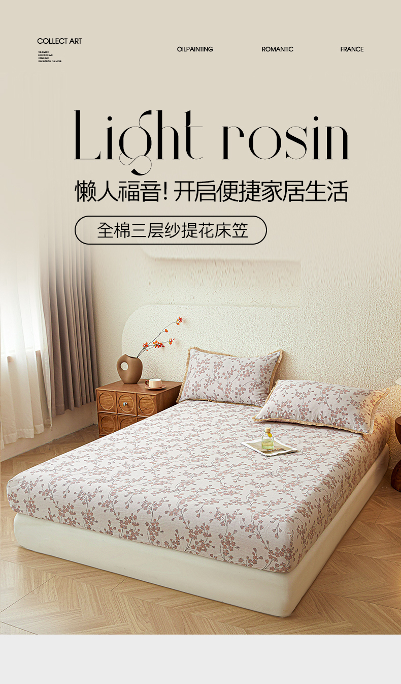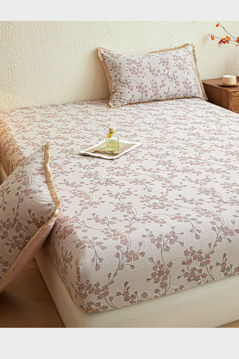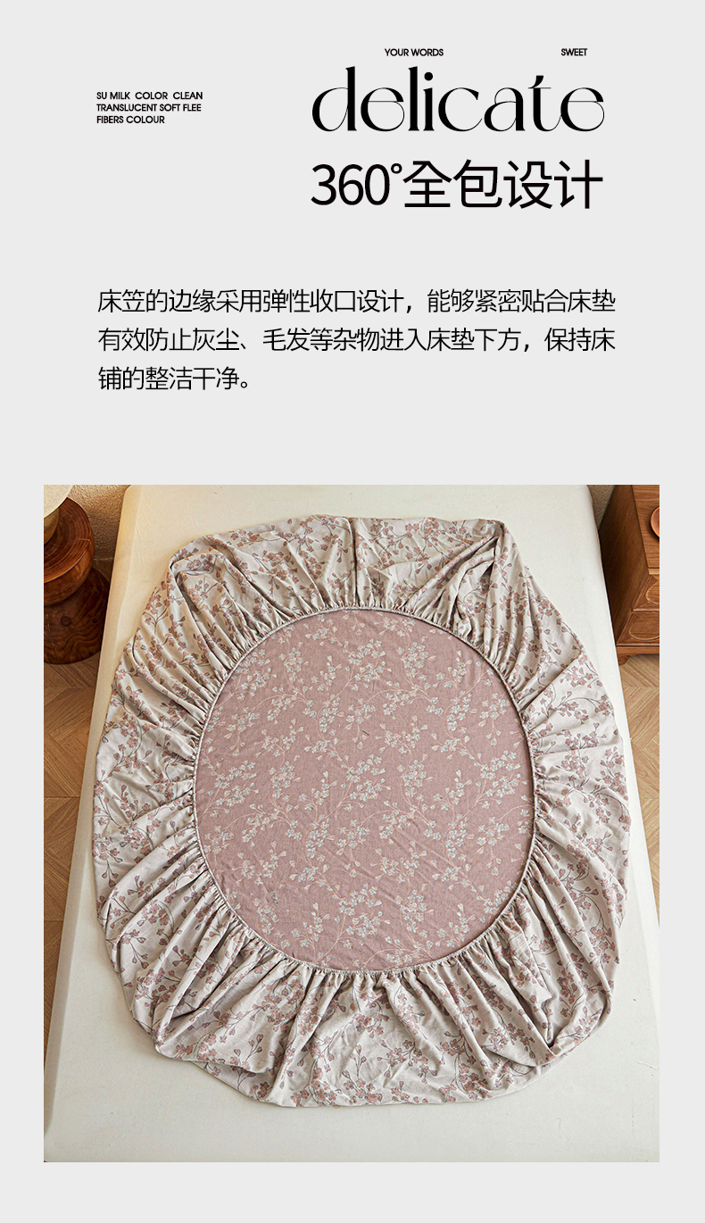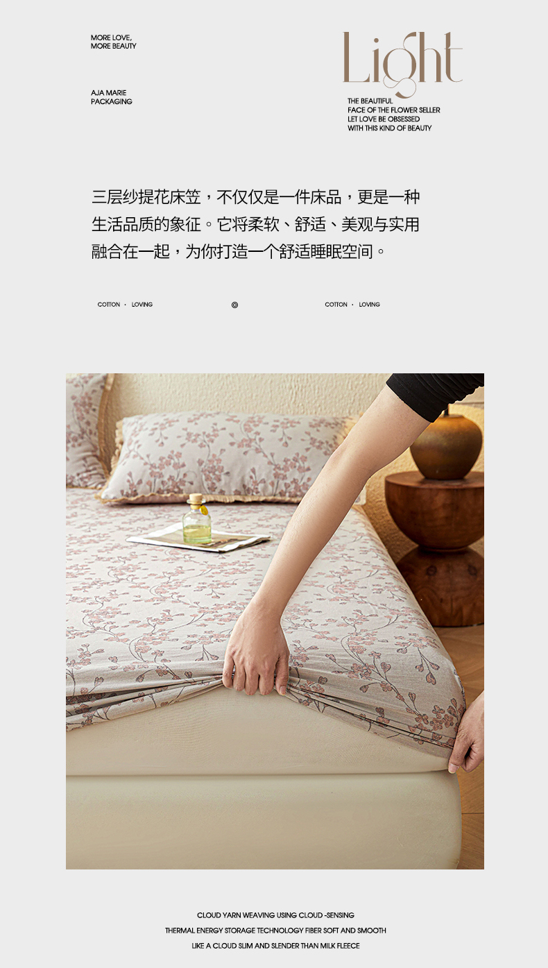 商品名称:极简 2025新款全棉三层纱提花床笠 波西娅柔粉
