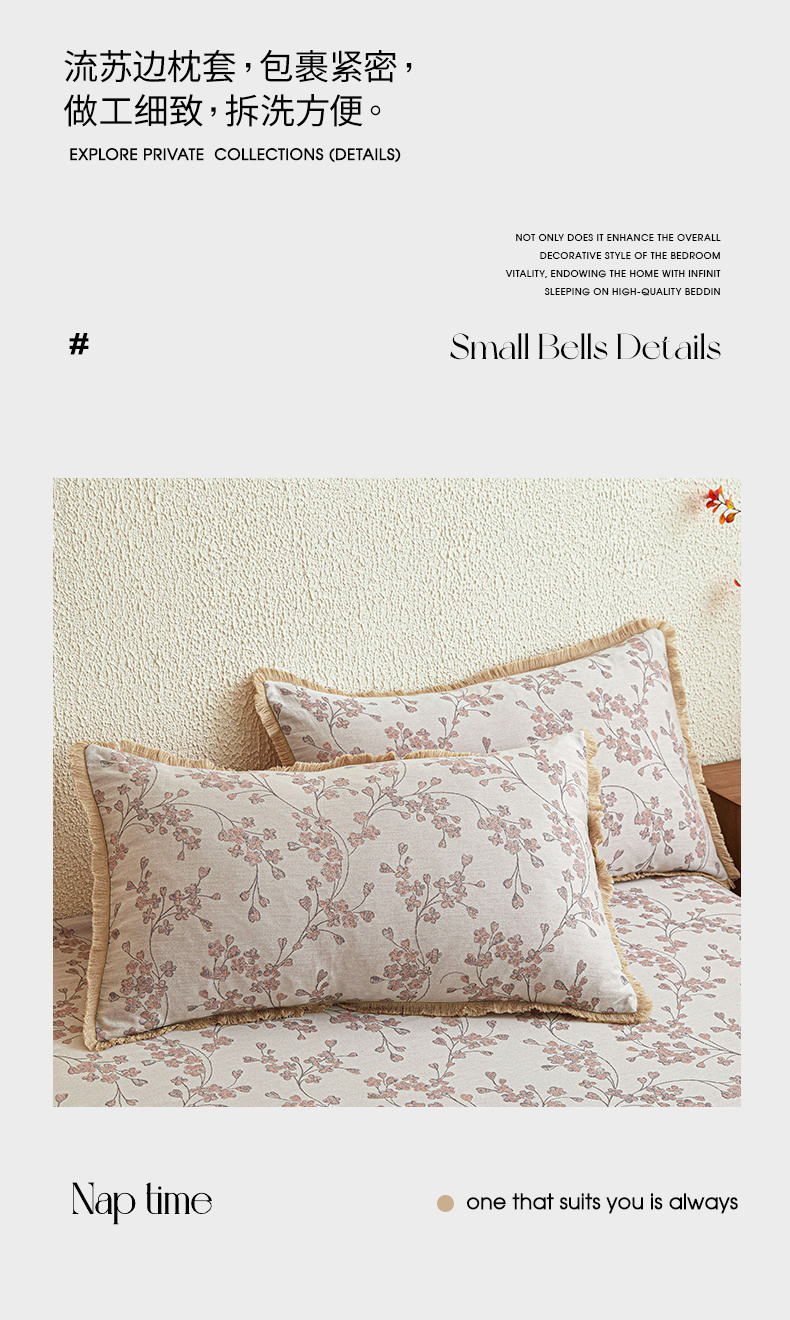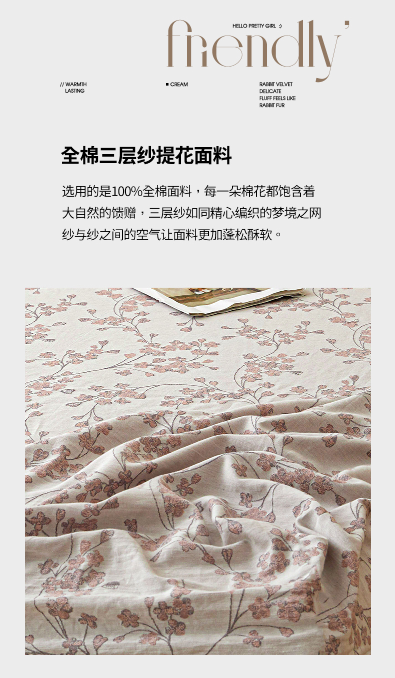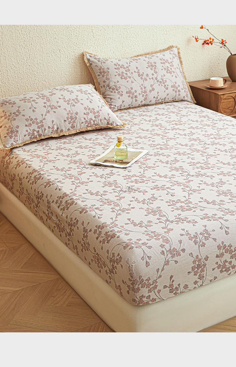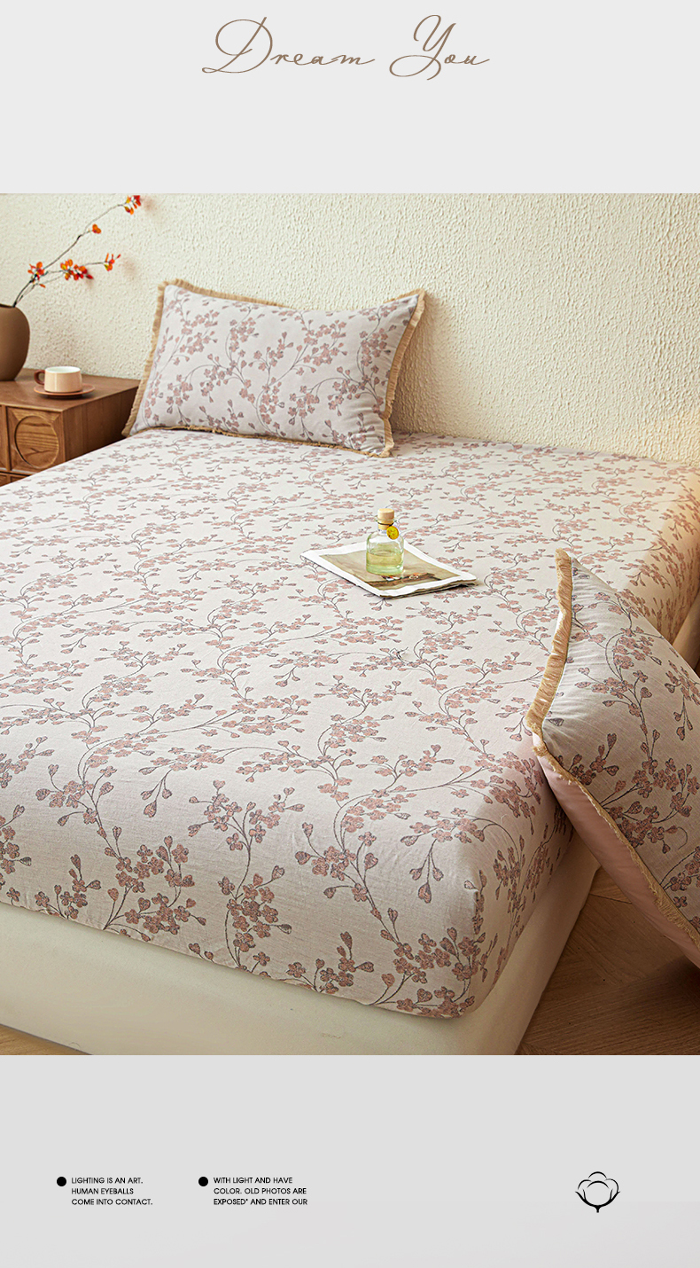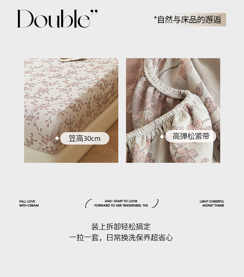 商品名称:极简 2025新款全棉三层纱提花床笠 波西娅柔粉