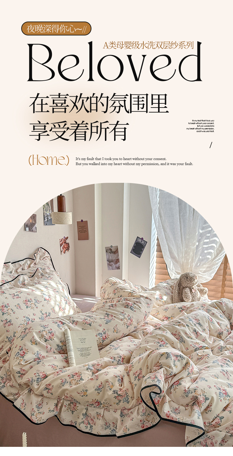 当前位置: 91家纺网 > 商品网购 > 床品套件 > 四件套 > 双层纱四件套 > 麦瑞家纺 2025新款A类韩版花边针织双层纱四件套 莱茵花