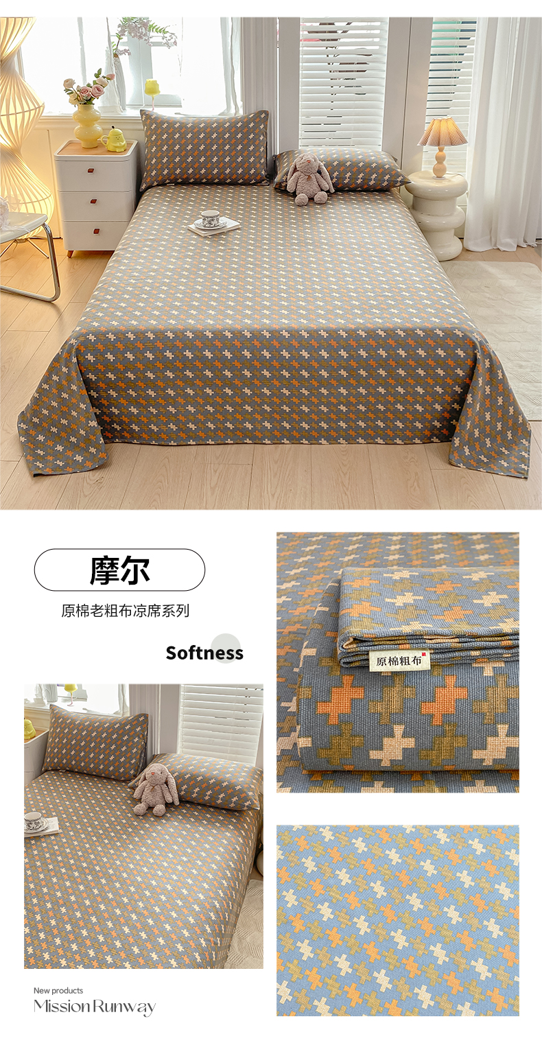 • 91家纺网 家纺一手货源 找家纺 米柳2025新款原棉老粗布凉席系列 摩尔