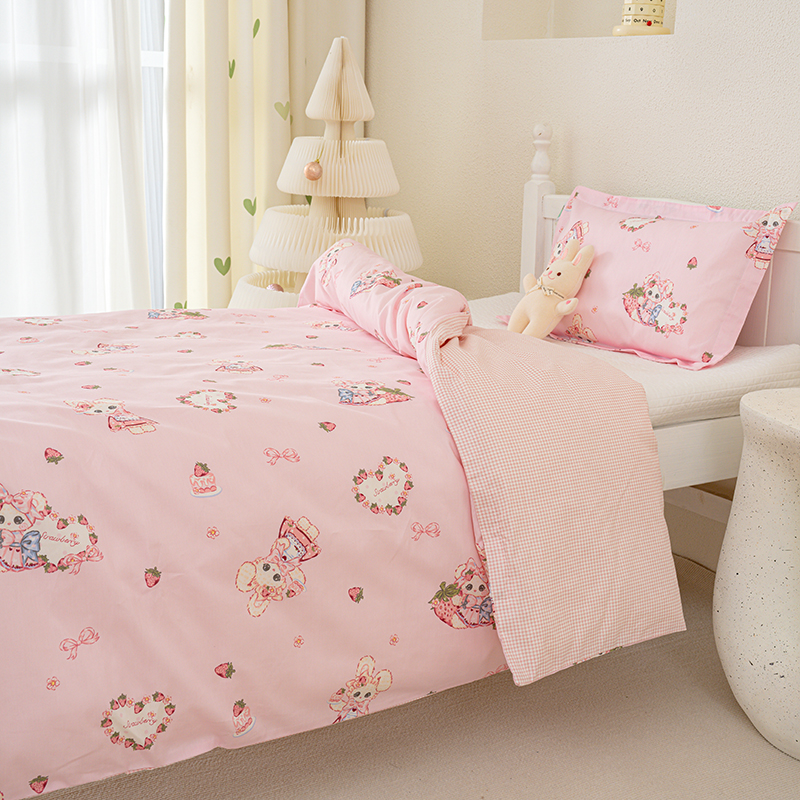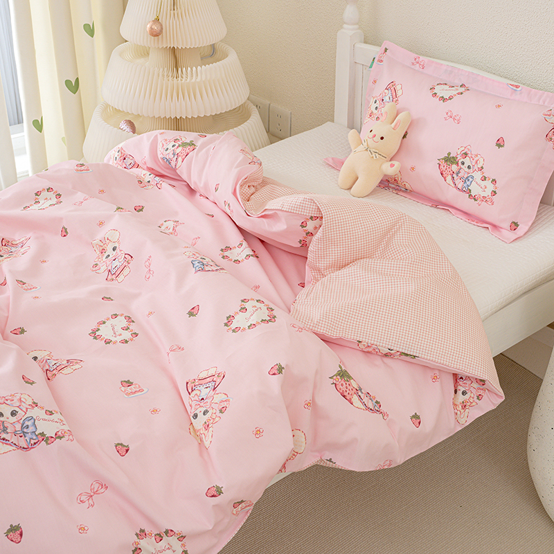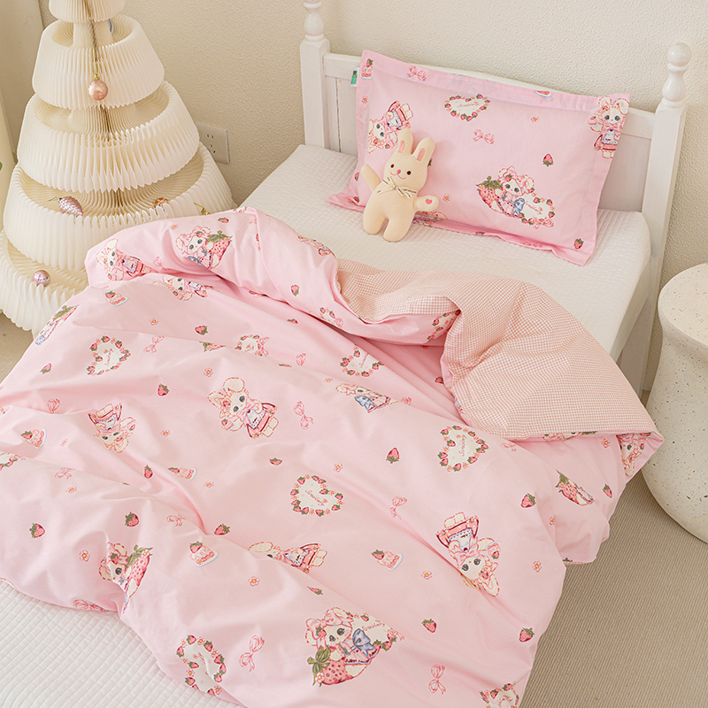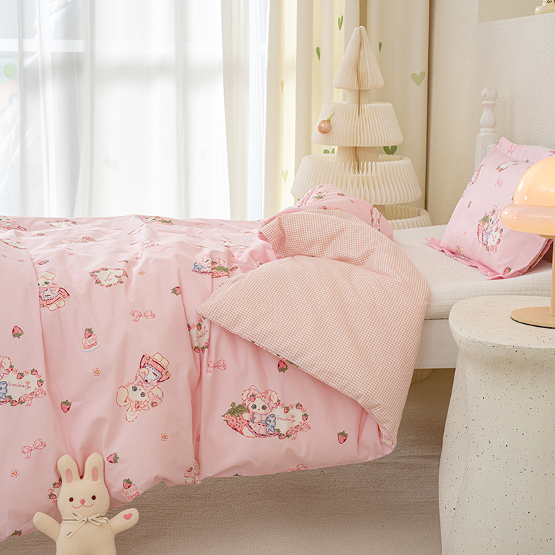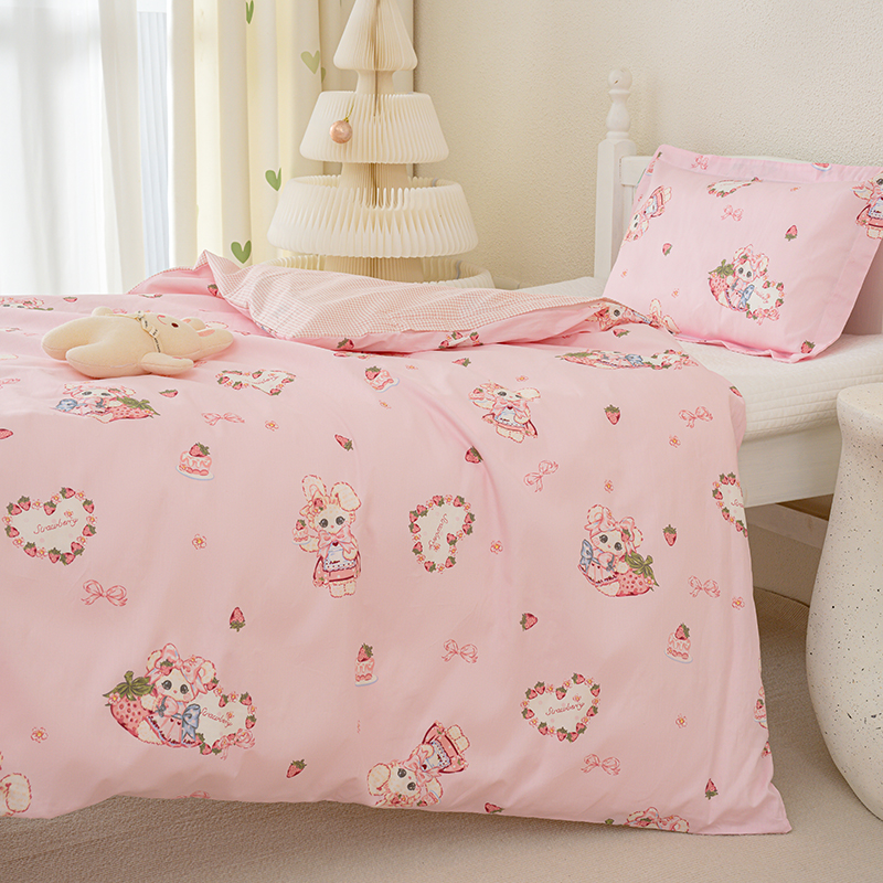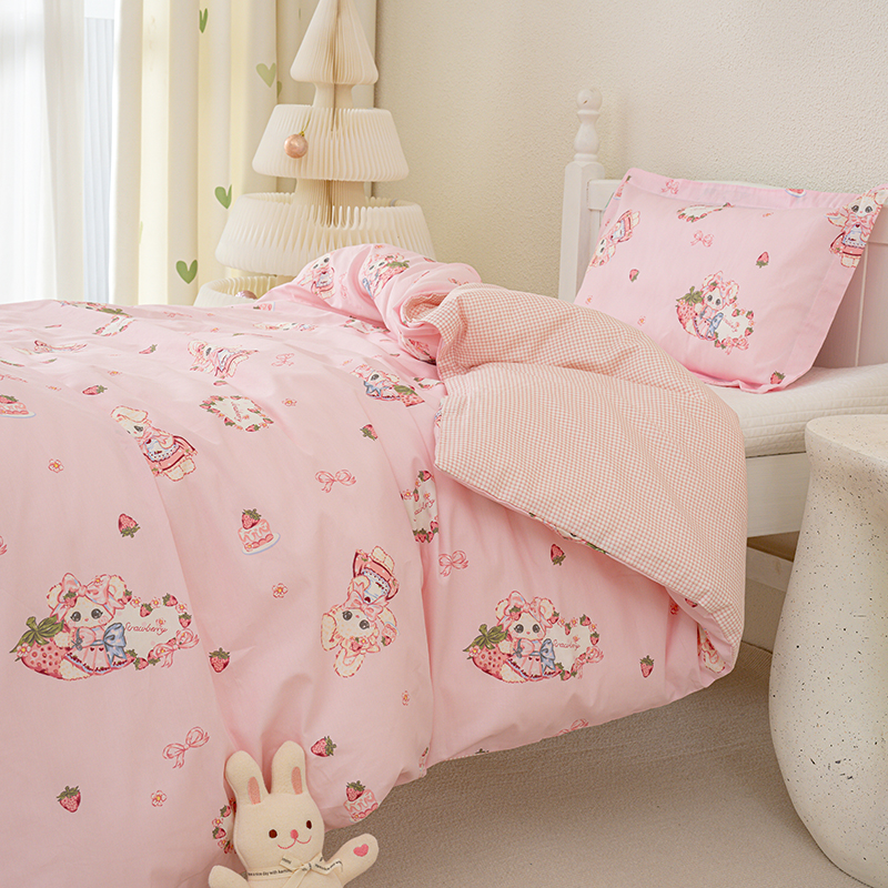 良佐生活 2025新款高支高密全棉儿童被套 草莓小兔