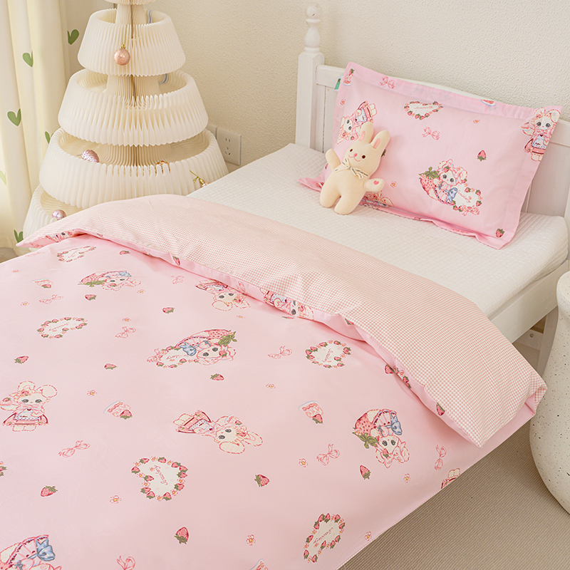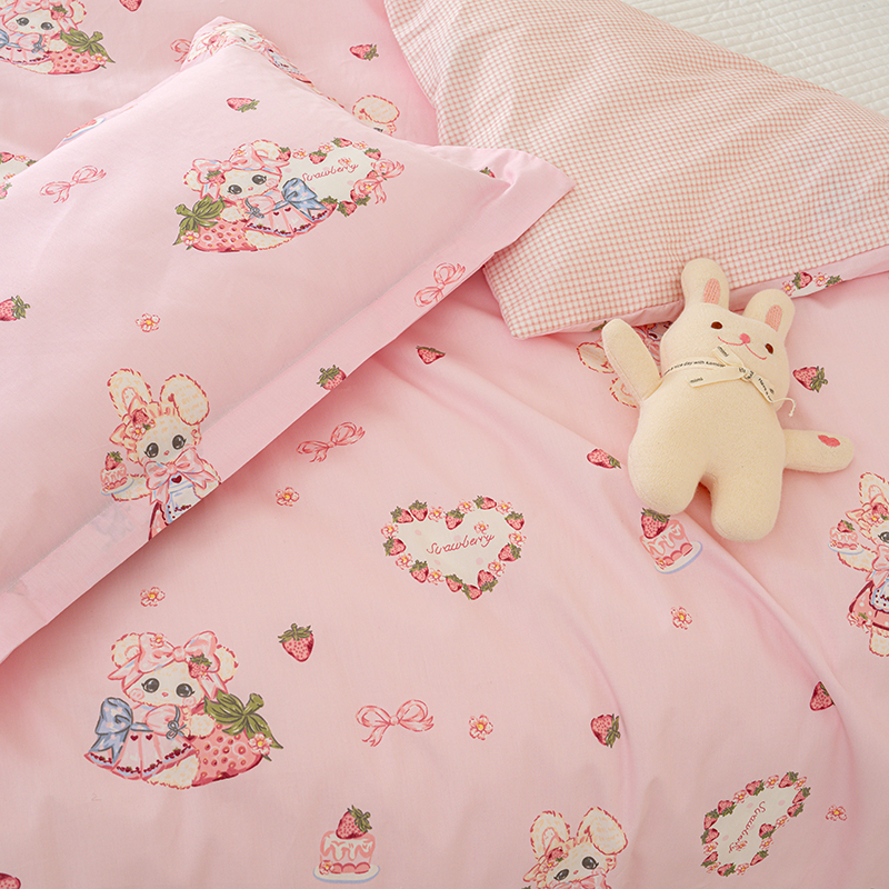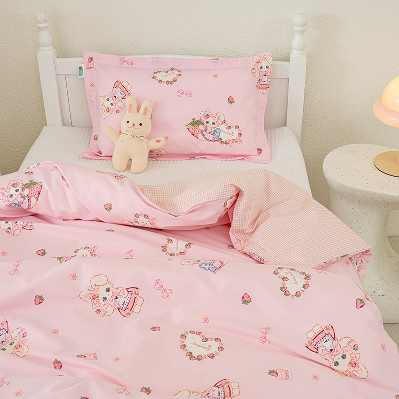 商品名称:良佐生活 2025新款高支高密全棉儿童被套 草莓小兔