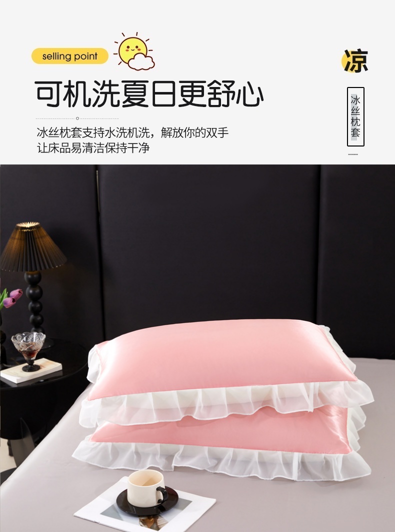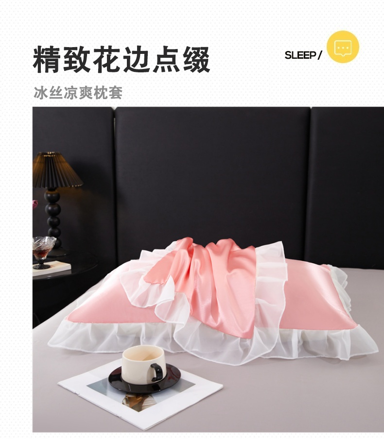 商品名称:梦舒羽 2025新款公主风夏季冰丝枕套单人一对装可水洗花边枕头套宿舍48x74cm枕芯套枕头套 花边款-玉色