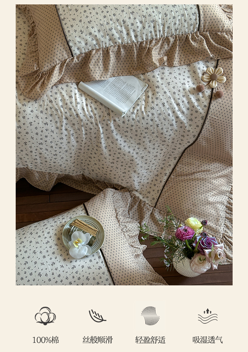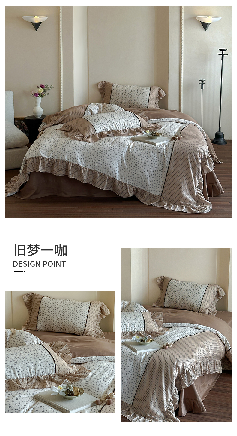 商品名称:名品优仓 2025新款纯棉水洗棉双层纱提花韩版花边四件套 旧梦 旧梦一咖