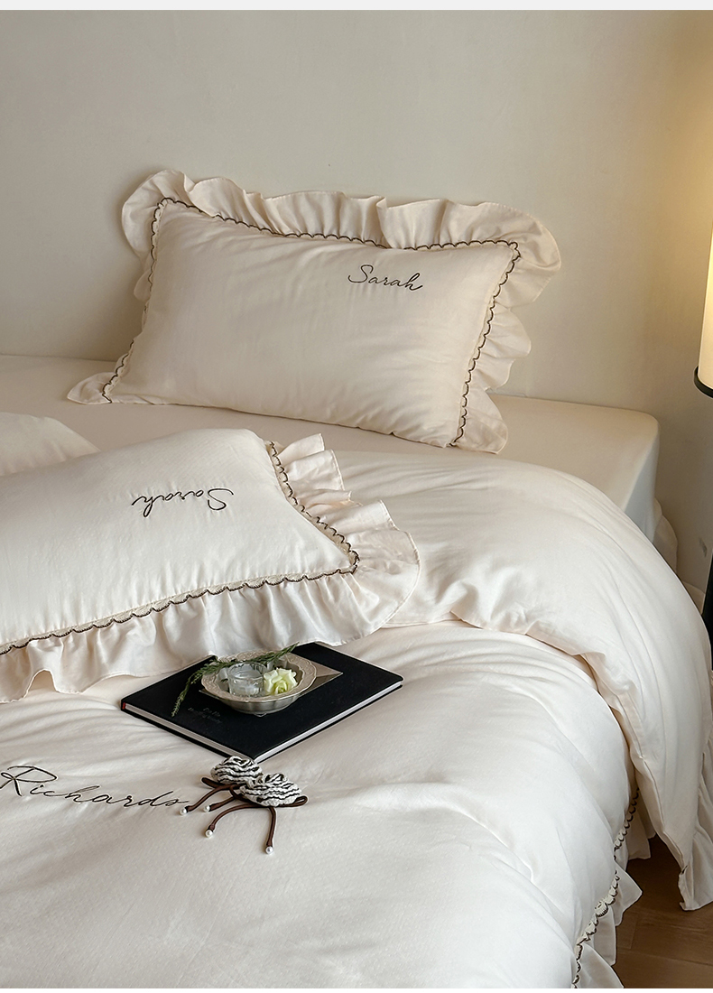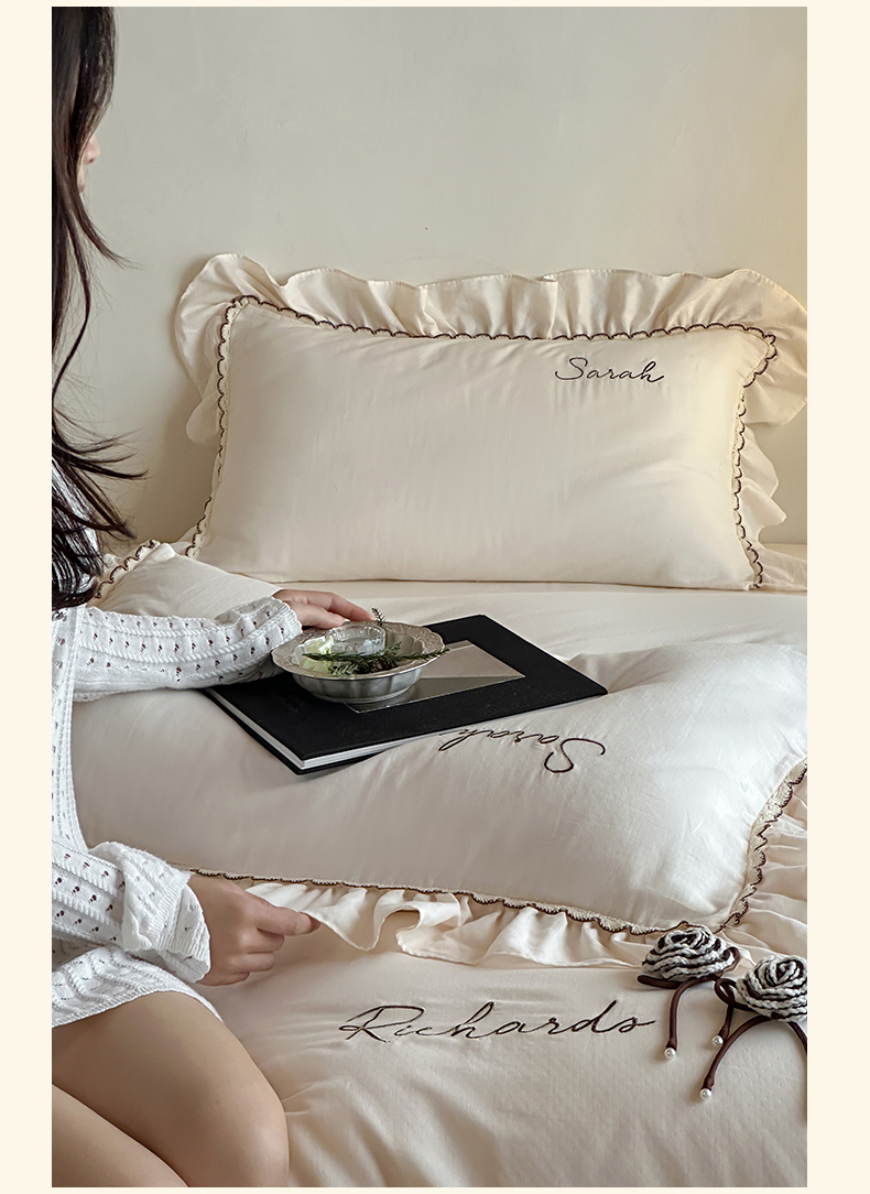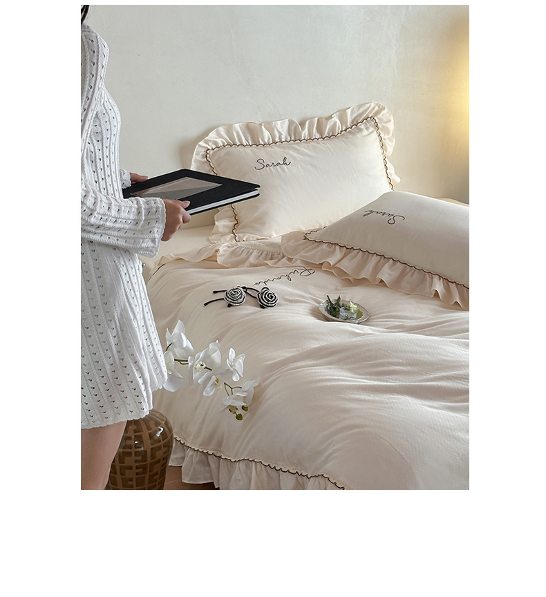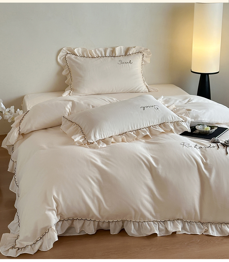 名品优仓 2025新款纯棉水洗棉双层纱提花手工花韩版花边四件套 思颖-奶昔白
