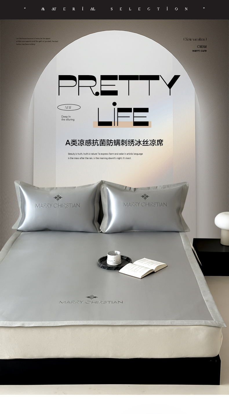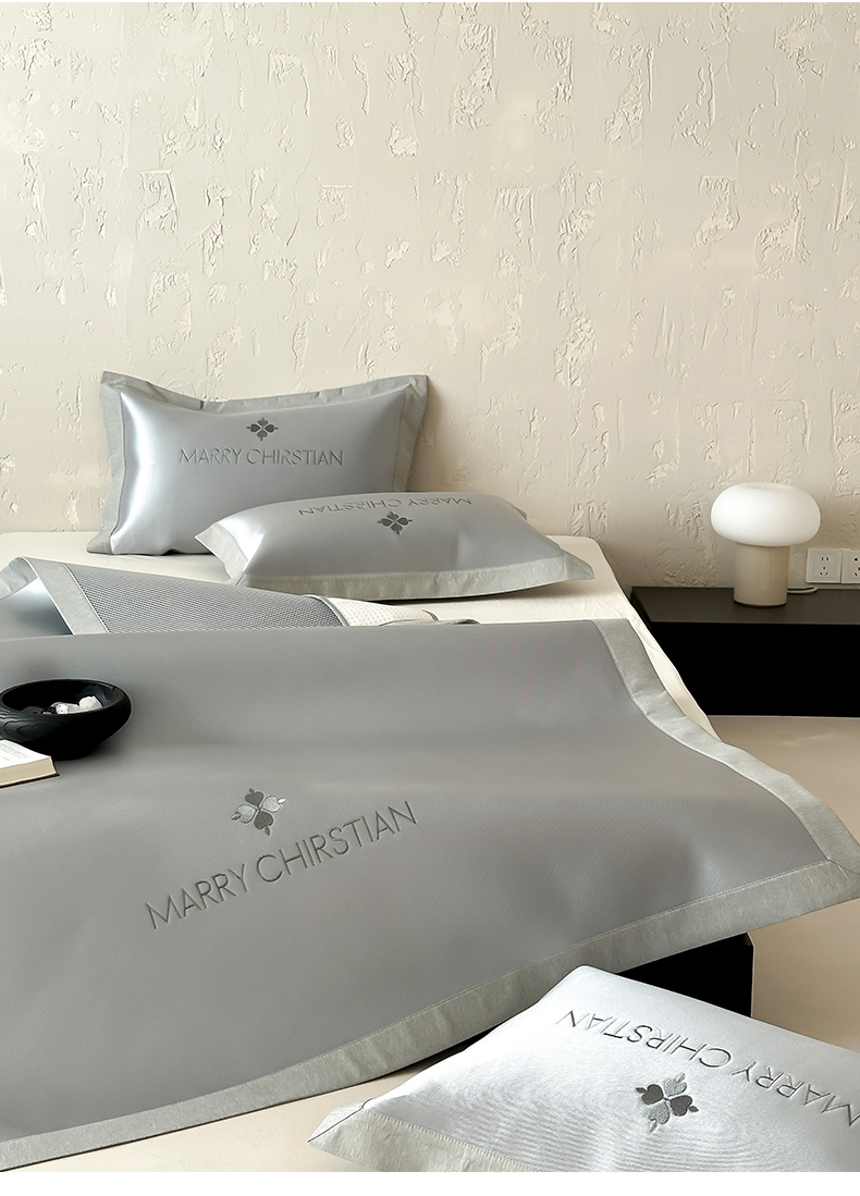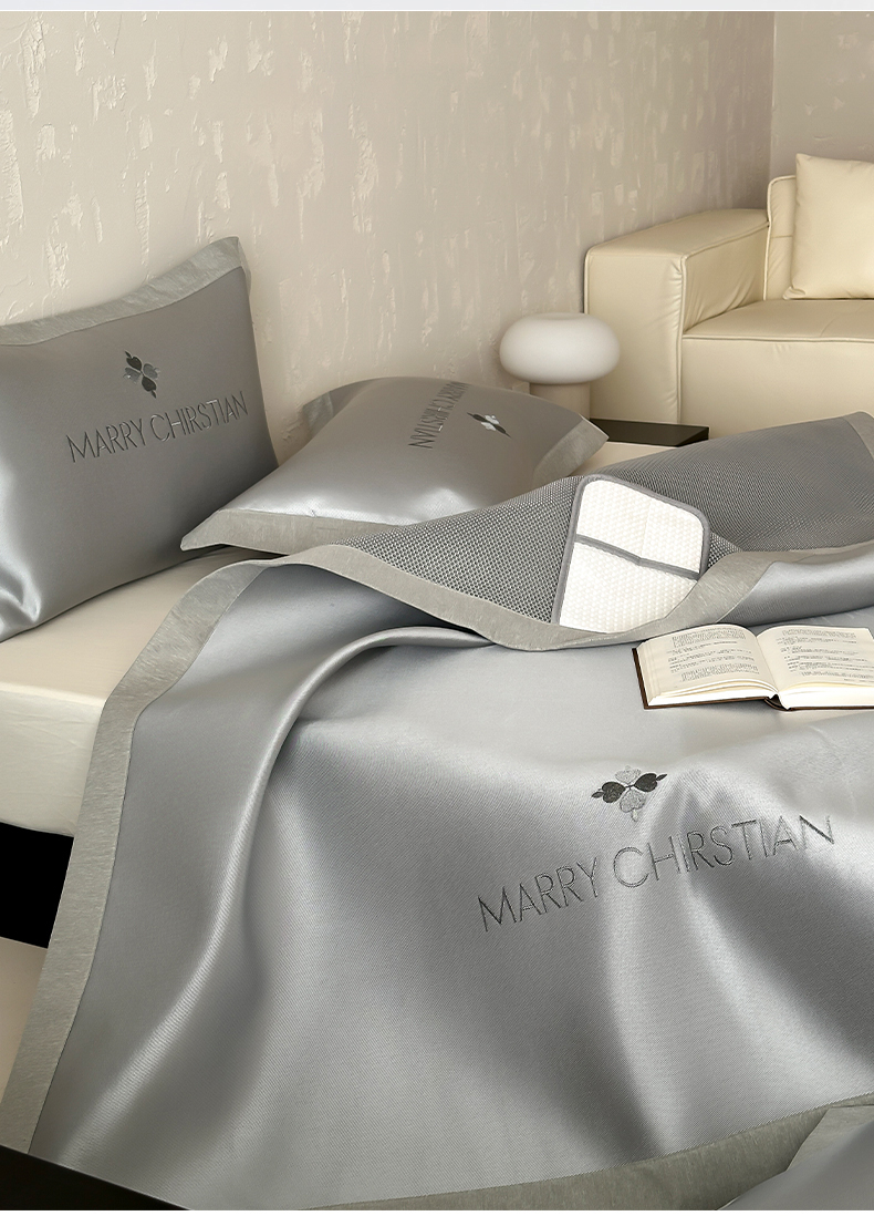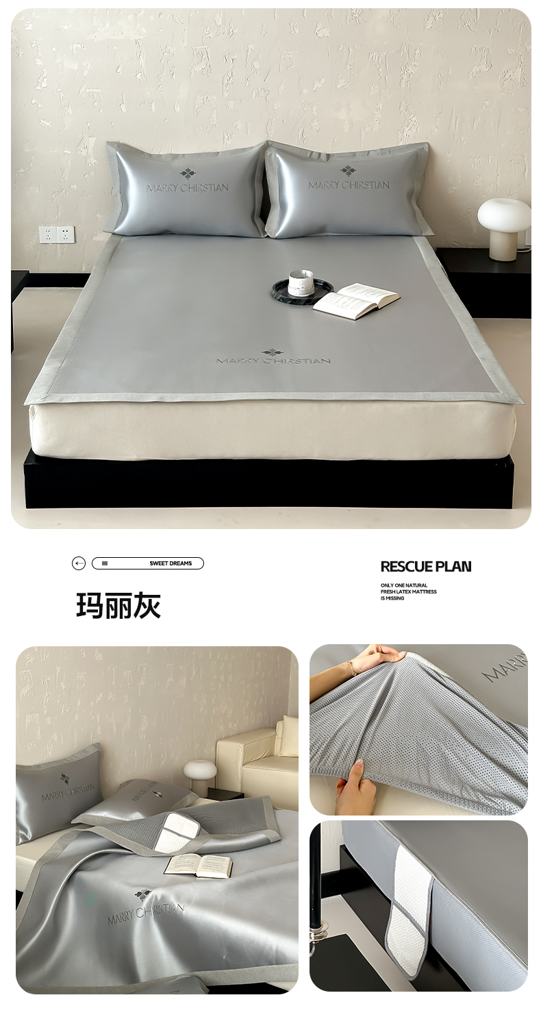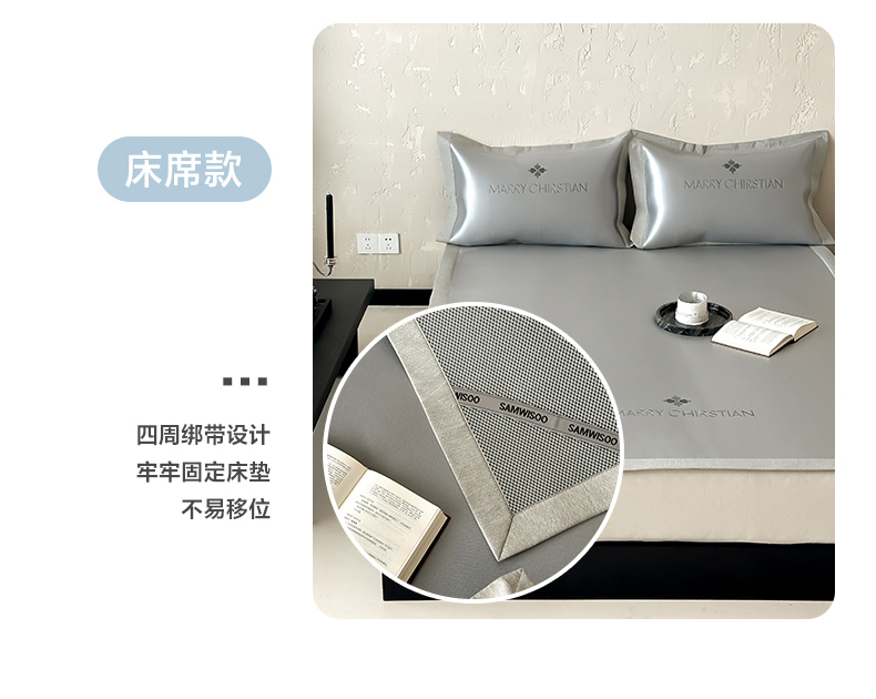 商品名称:三味舒屋 2025新款凉感抗菌防螨印花冰丝养生席玛丽刺绣系列 玛丽灰 床席