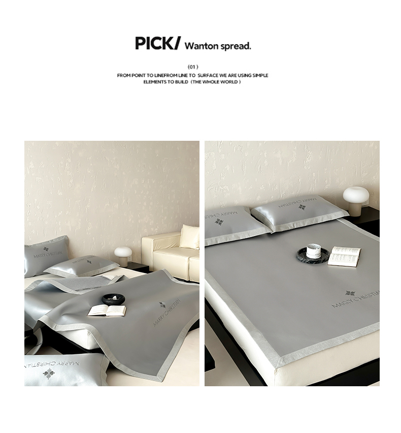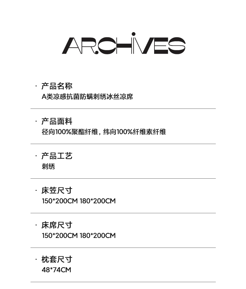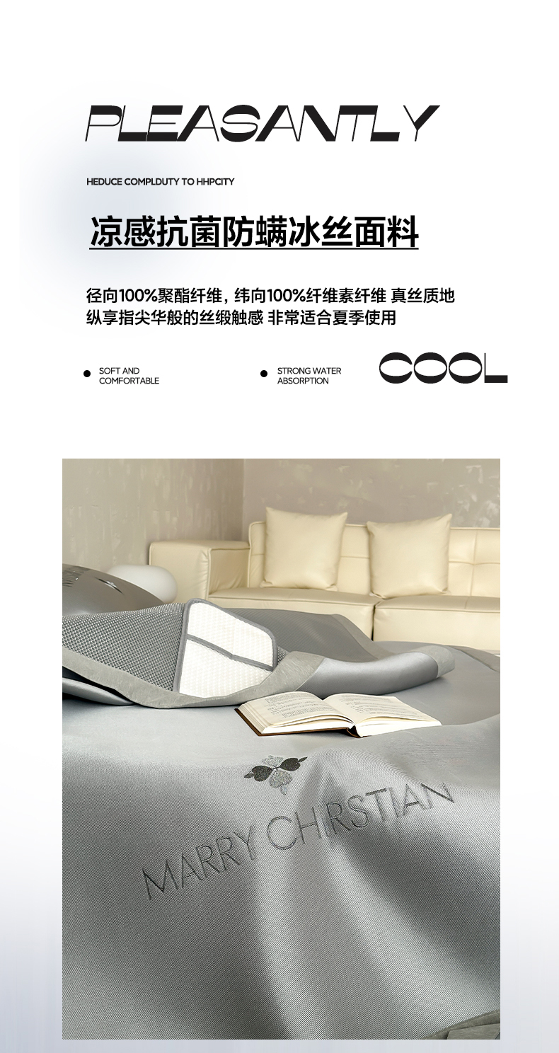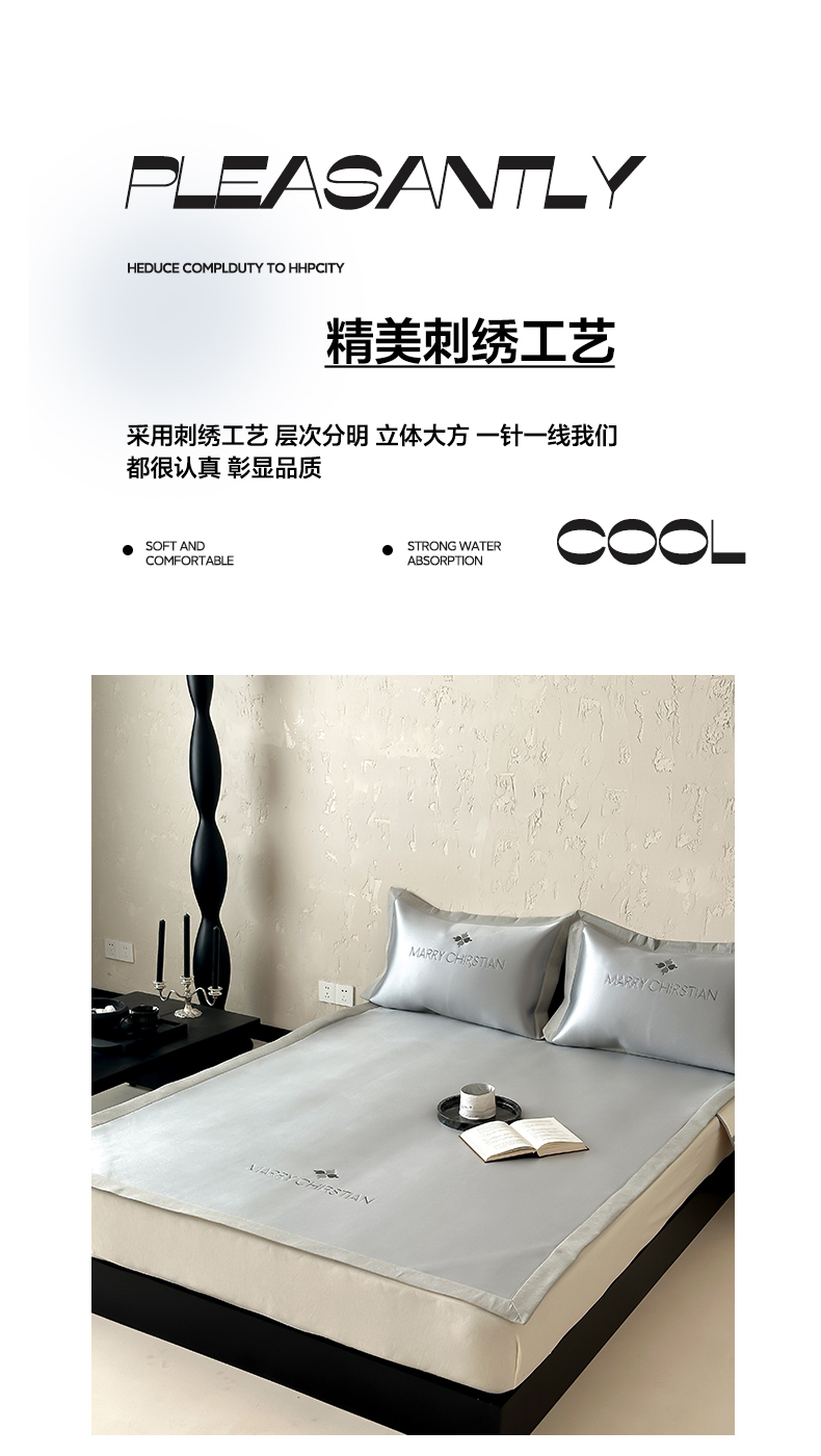 商品名称:三味舒屋 2025新款凉感抗菌防螨印花冰丝养生席玛丽刺绣系列 玛丽灰 床席