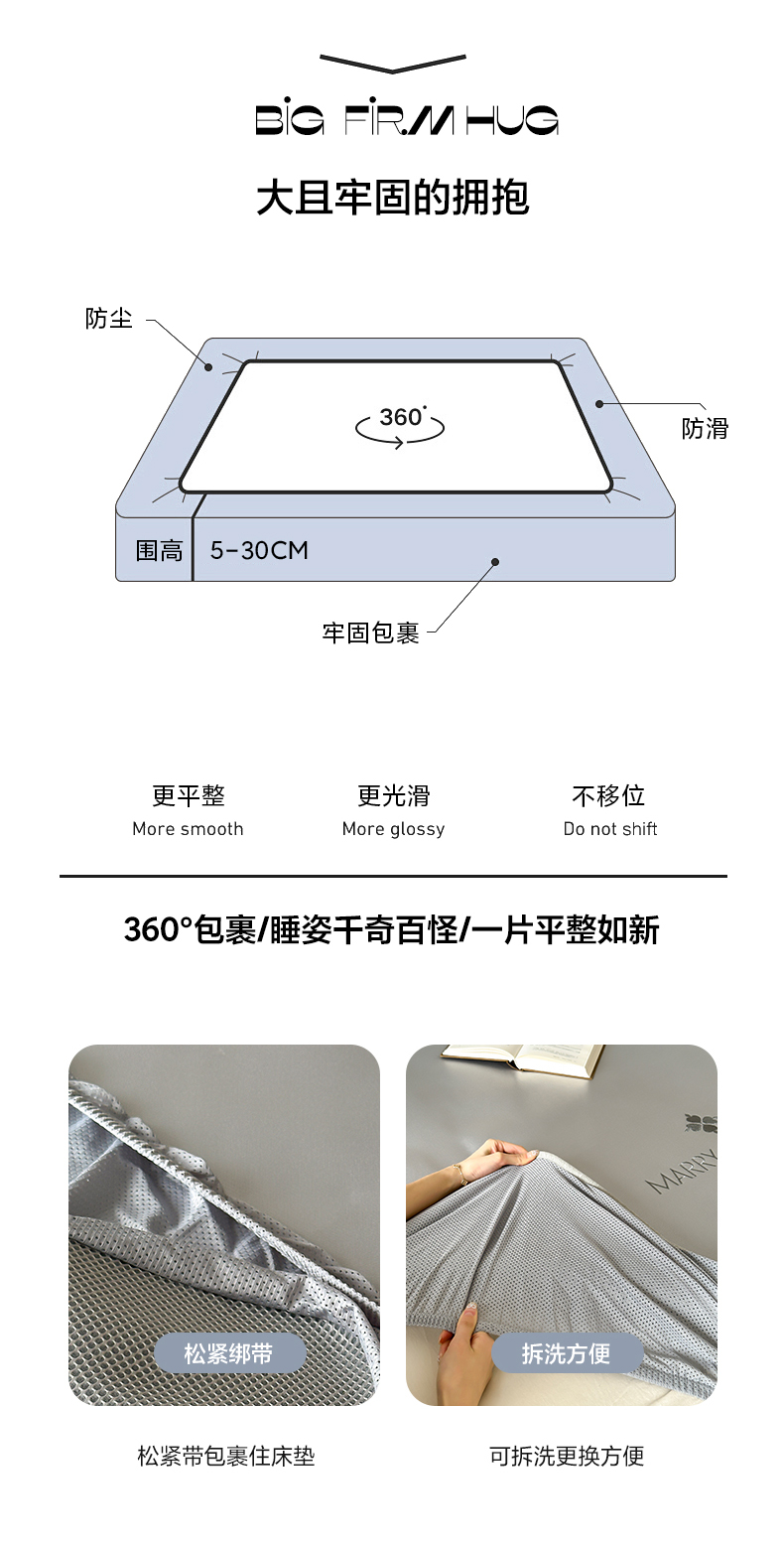 (总)三味舒屋 2026新款三防功能夹棉床笠床垫保护罩(严格控价:券后135/155/165),组合图仅供展示-不可下单,纯净白,净月白,净月灰,雅致灰
