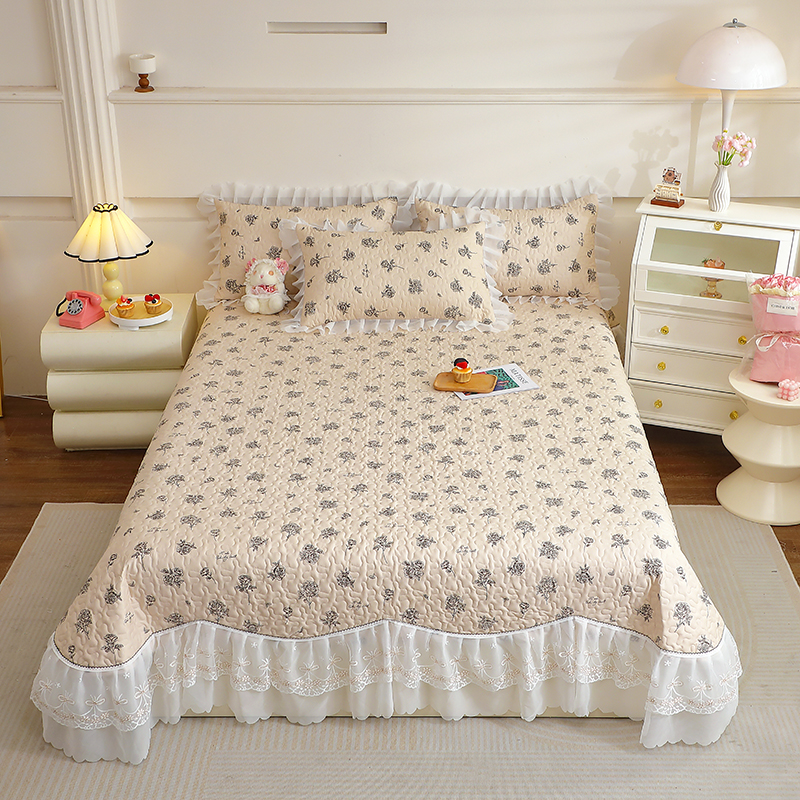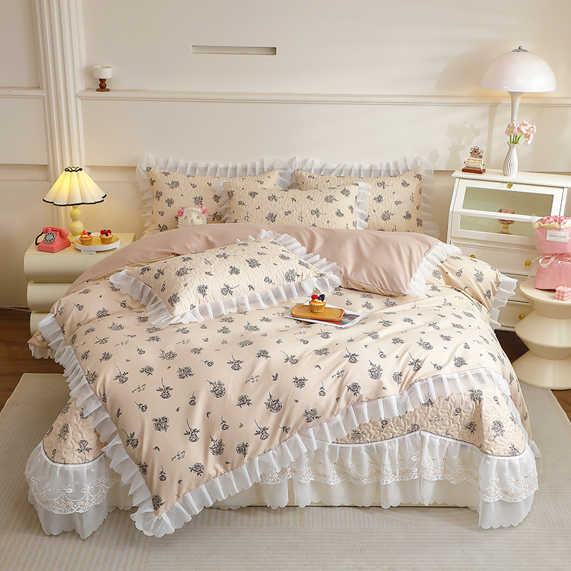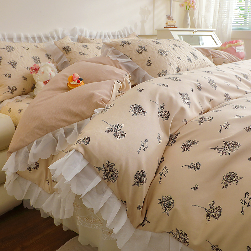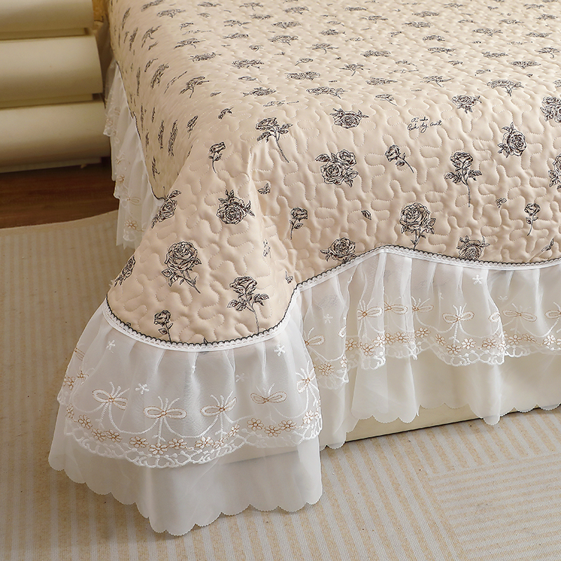 商品名称:雪夫人2025新款A类夹棉床盖床裙四件套 玫瑰花坊
