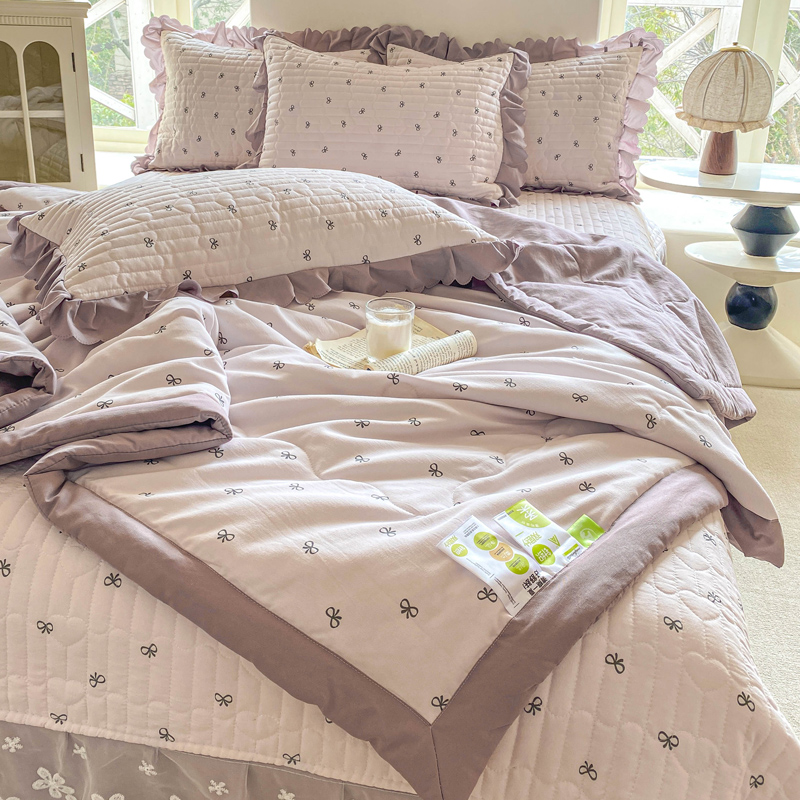 当前位置: 91家纺网 > 商品网购 > 床品套件 > 四件套 > 针织棉四件套 > 2025新款直播热款A类针织棉双层纱床盖款夏被四件套 米娅