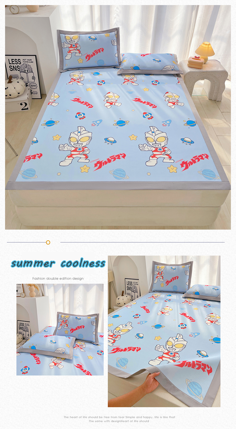 商品名称:(总)云恋家纺 2025卡通小版冰丝席三件套奥特曼儿童凉席空调软席子单双人可折叠水洗