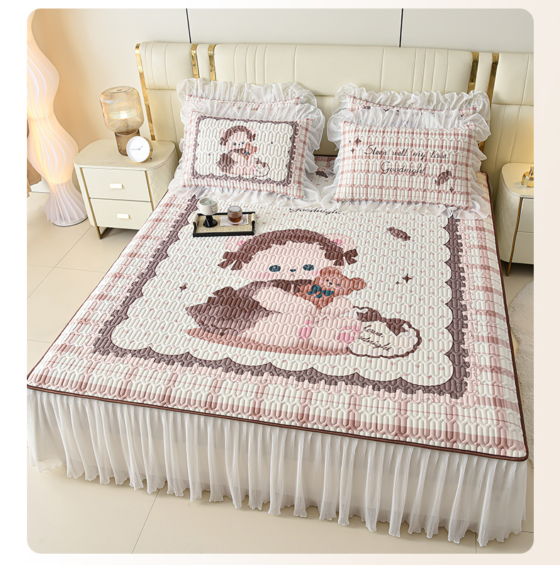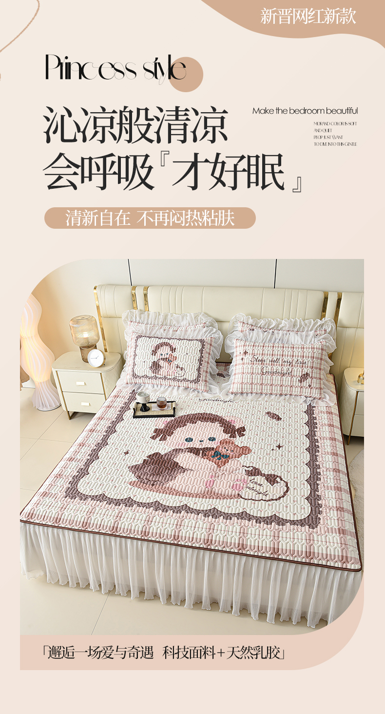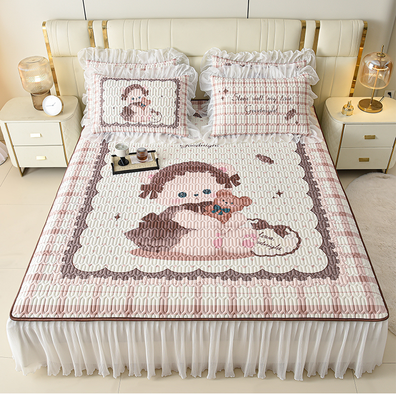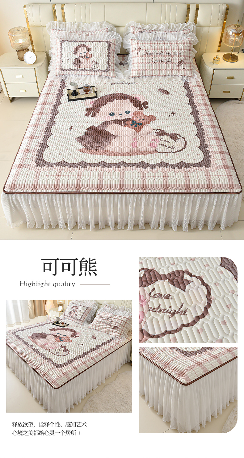 炫拼家纺 2025新款凉感丝印花床裙款乳胶凉席三件套 可可熊