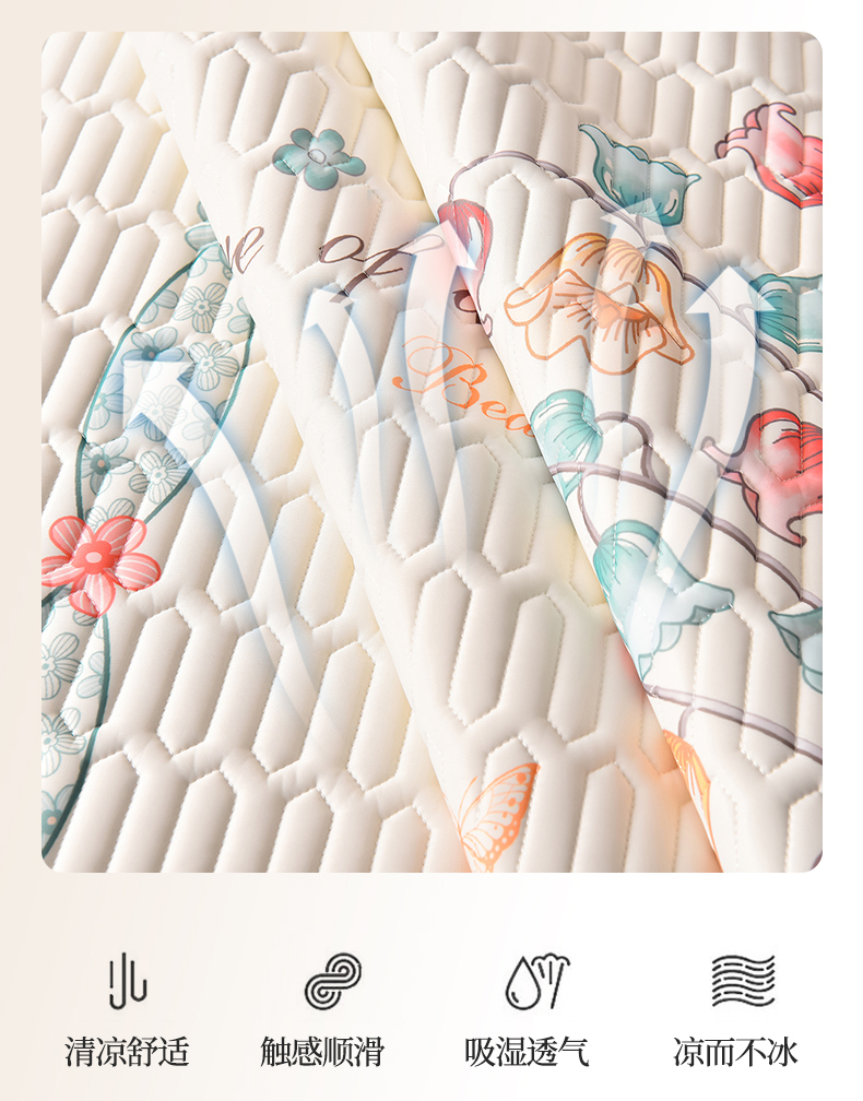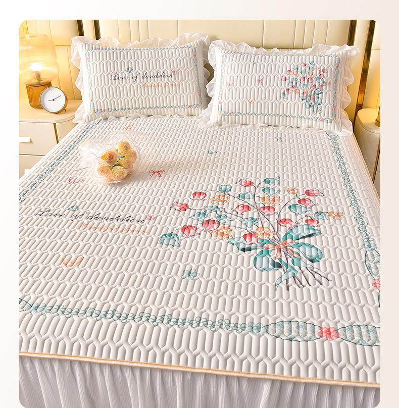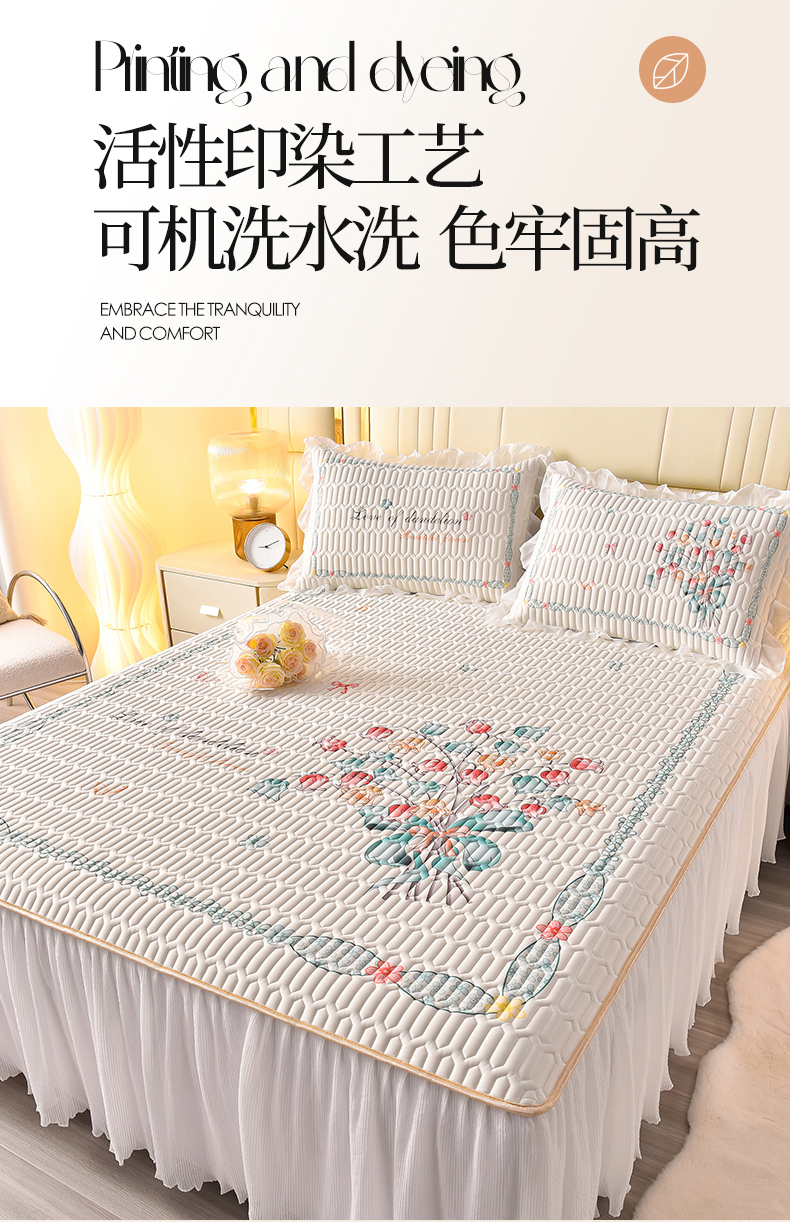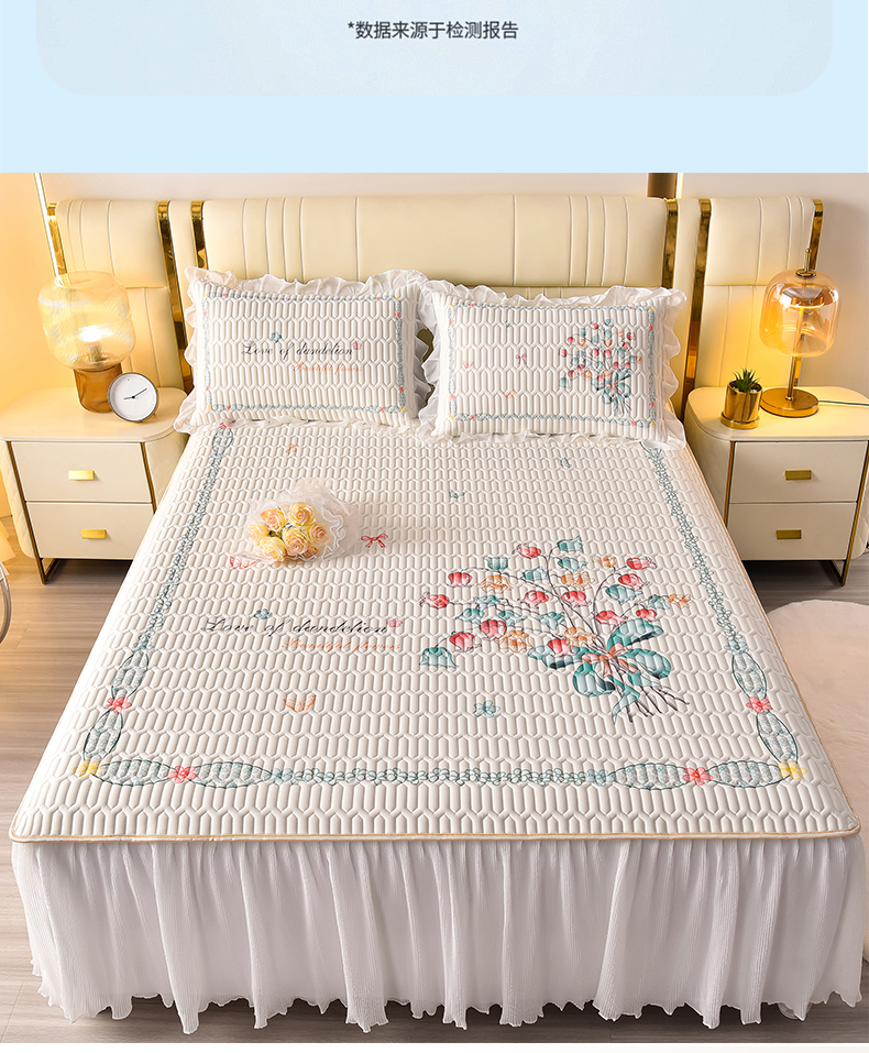 炫拼家纺 2025新款凉感丝印花床裙款乳胶凉席三件套 蓝铃花