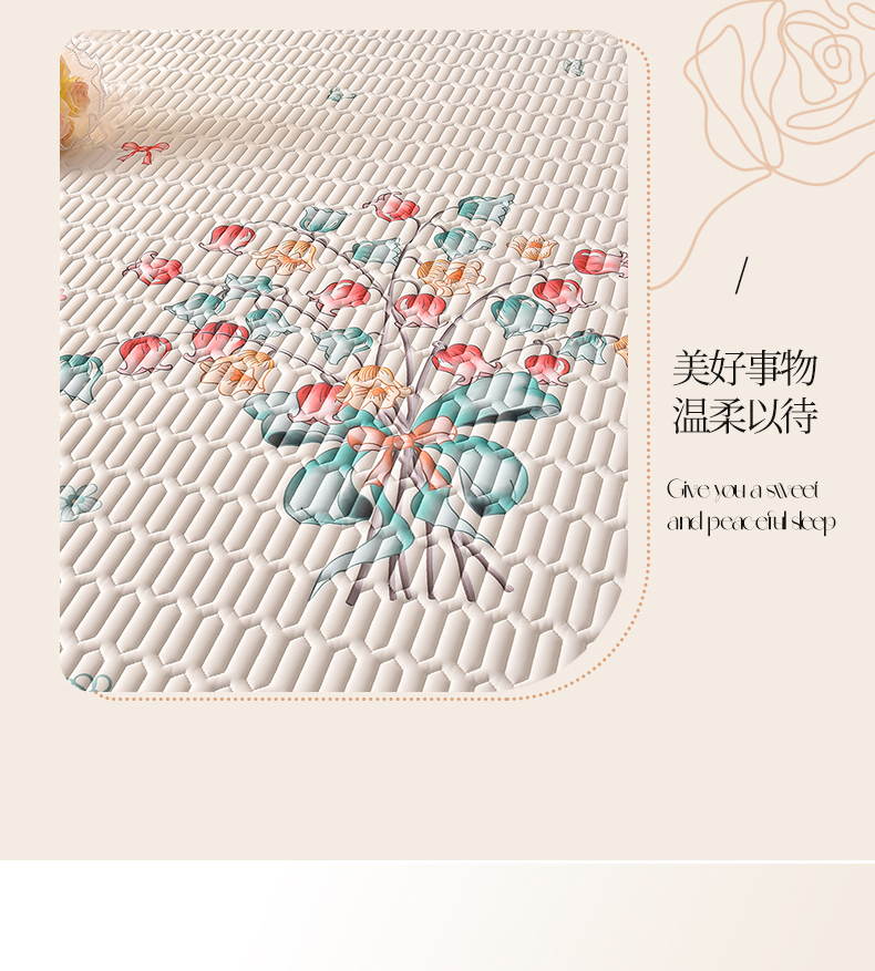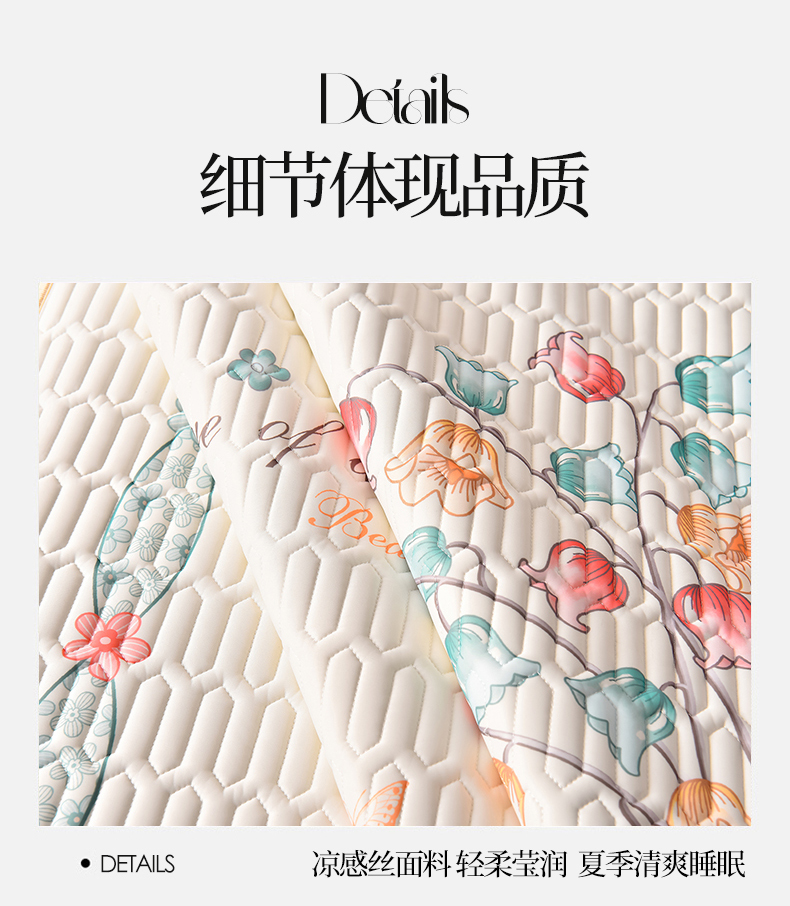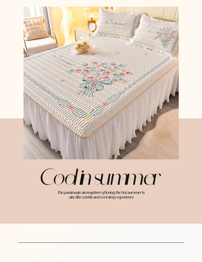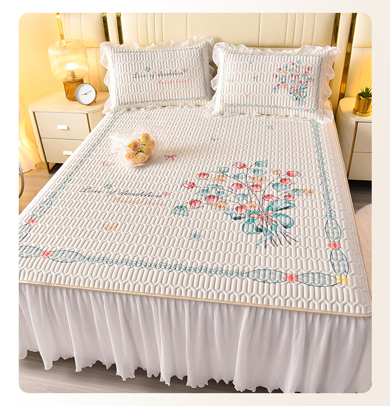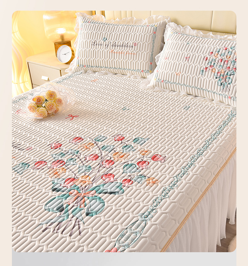 炫拼家纺 2025新款凉感丝印花床裙款乳胶凉席三件套 蓝铃花