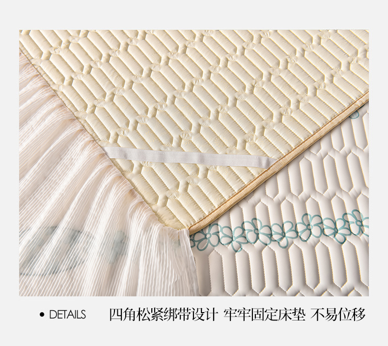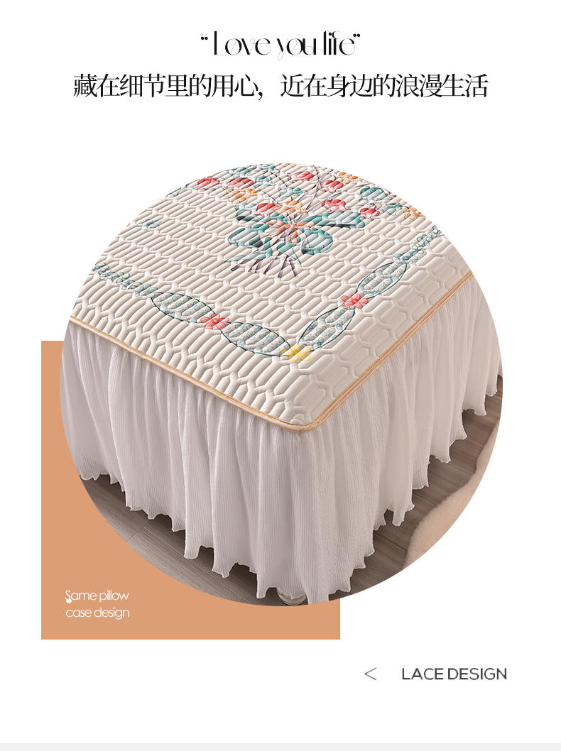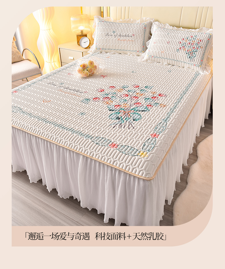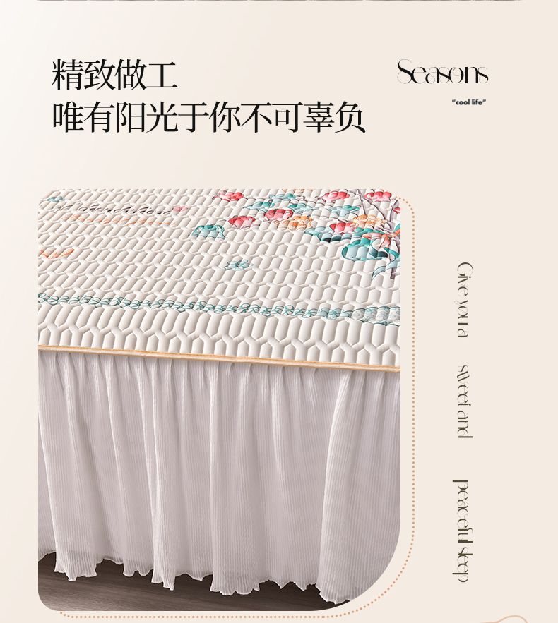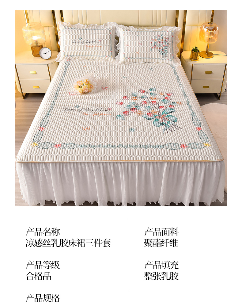 商品名称:炫拼家纺 2025新款凉感丝印花床裙款乳胶凉席三件套 蓝铃花