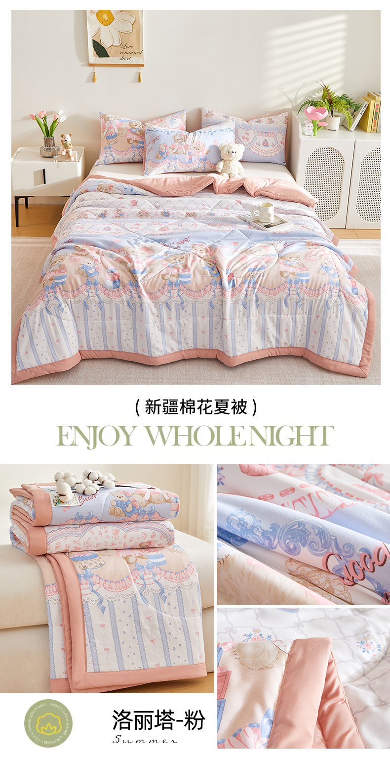 商品名称:海洋家纺 2025款水洗棉纯棉花夏凉被全棉花印花夏被空调被薄被子 洛丽塔-粉