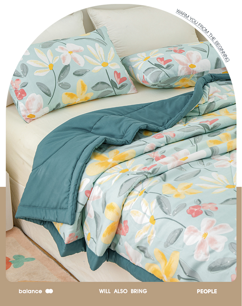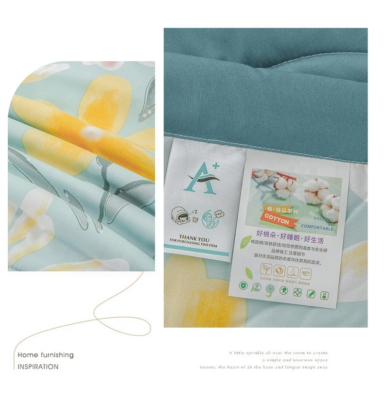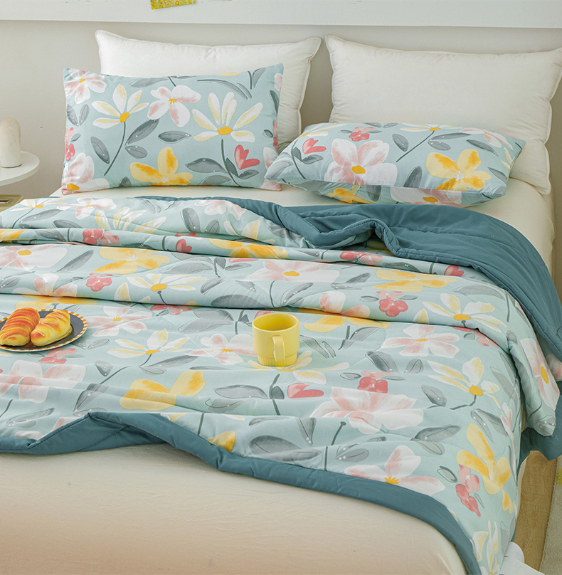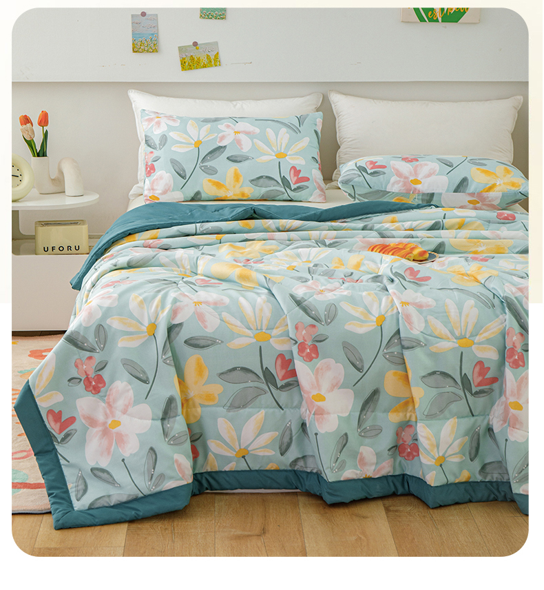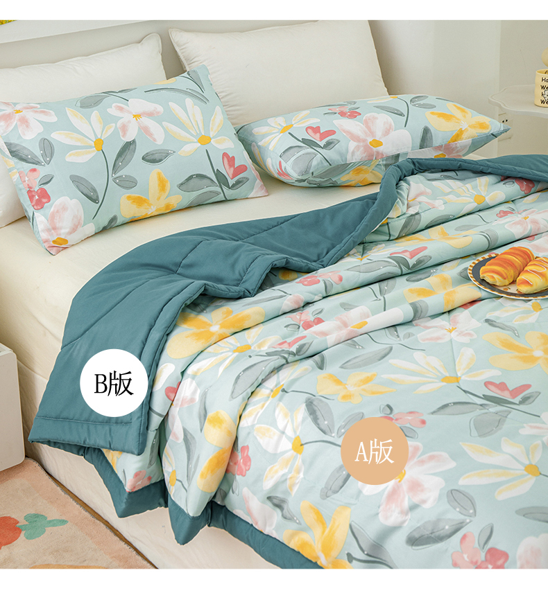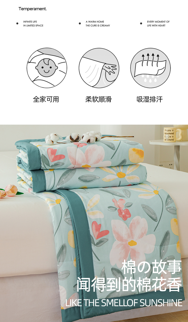商品名称:海洋家纺 2025款水洗棉纯棉花夏凉被全棉花印花夏被空调被薄被子 春风里蓝