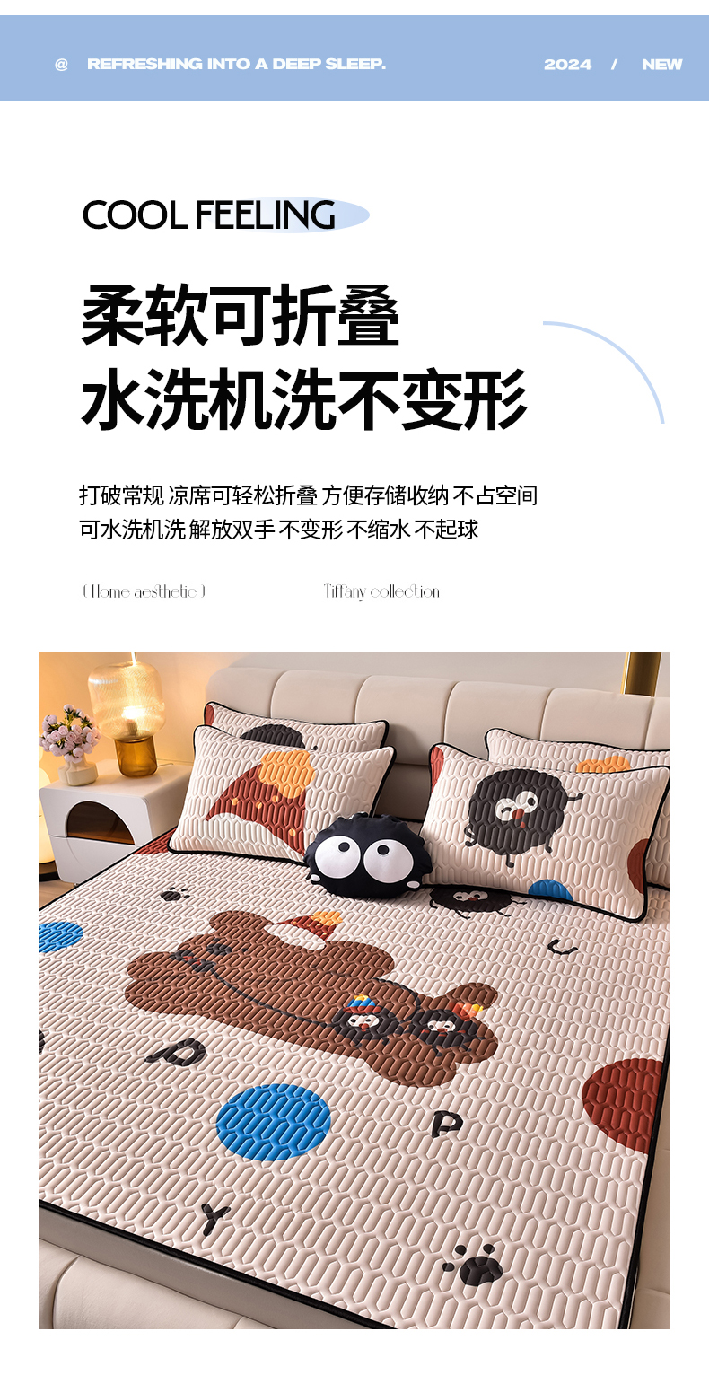 商品名称:炫拼家纺 2025新款凉感丝大版乳胶凉席三件套 欢乐狗