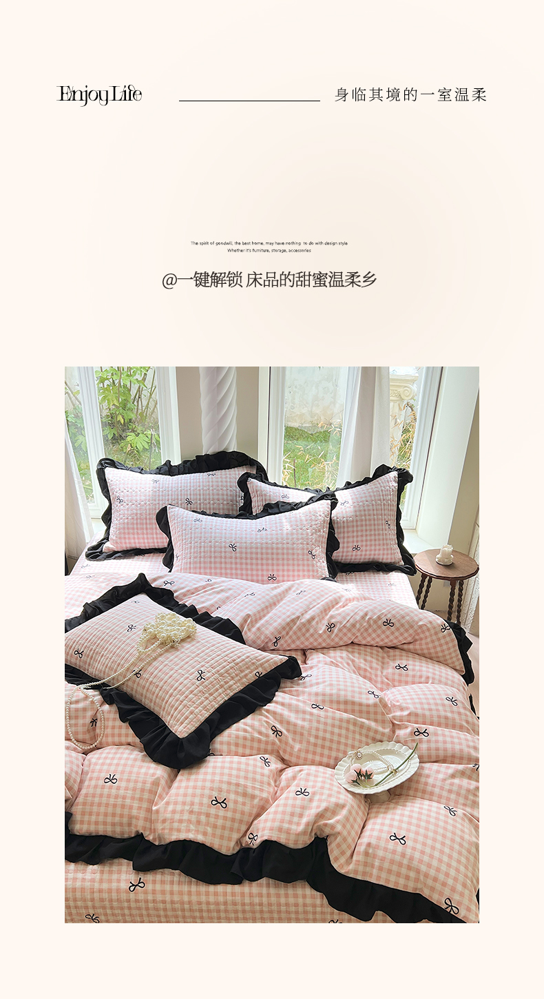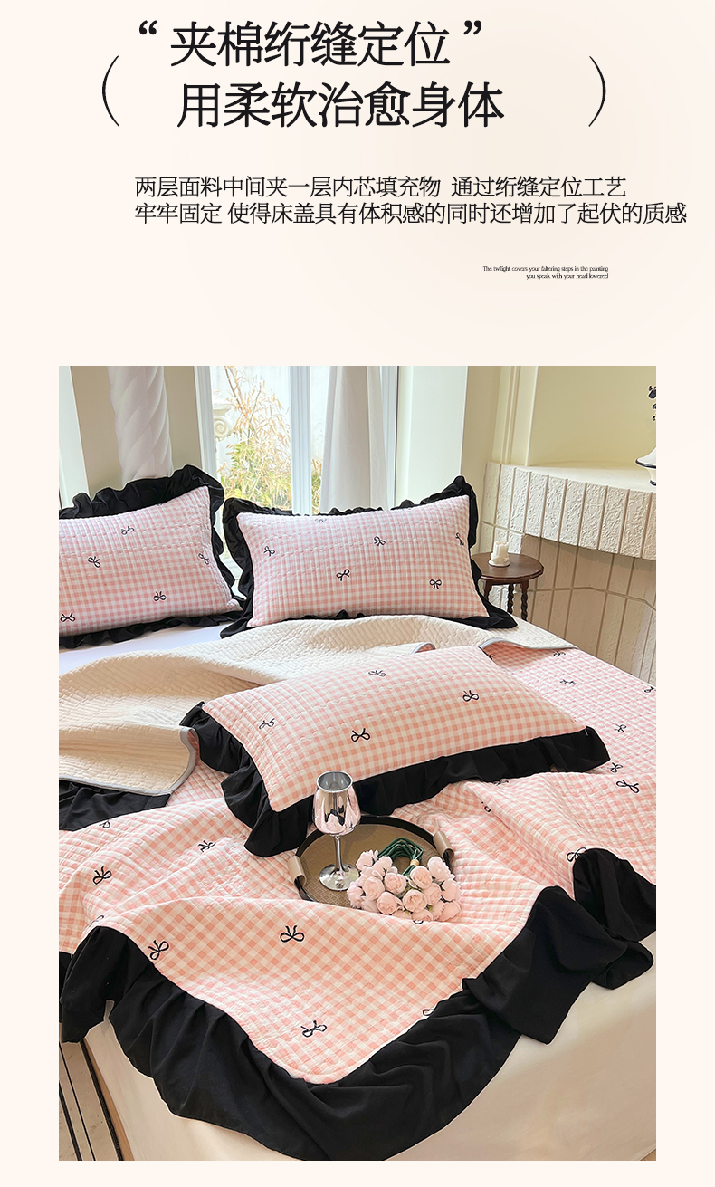 商品名称:八方汇(一户被芯生活馆) 2025新款水洗棉花边夏被款夏凉被空调被床盖四件套 赫本-蝴蝶结粉