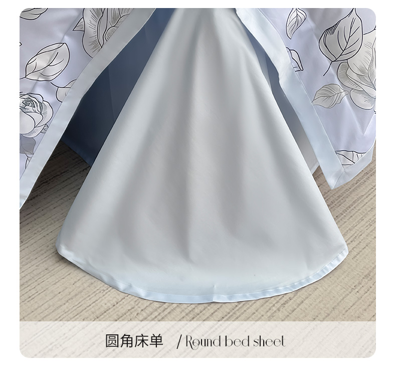 商品名称:2025新款夏季热款A类母婴级数码印花全棉四件套高端纯棉被套长绒棉床单床笠床上用品 沐熙-蓝