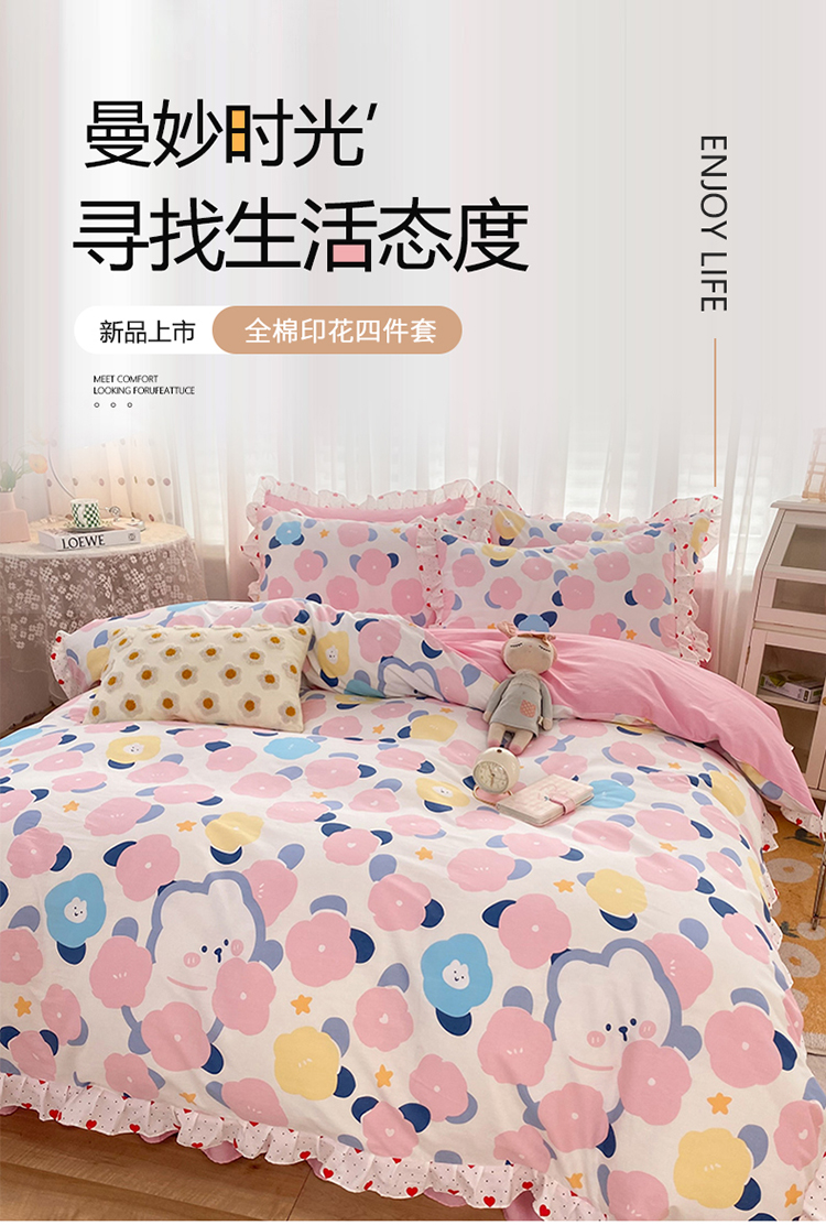 当前位置: 91家纺网 > 商品网购 > 床品套件 > 四件套 > 全棉普通四件套 > 2025新款公主风四件套全棉纯棉白花边被套床单款式三件套 小红花