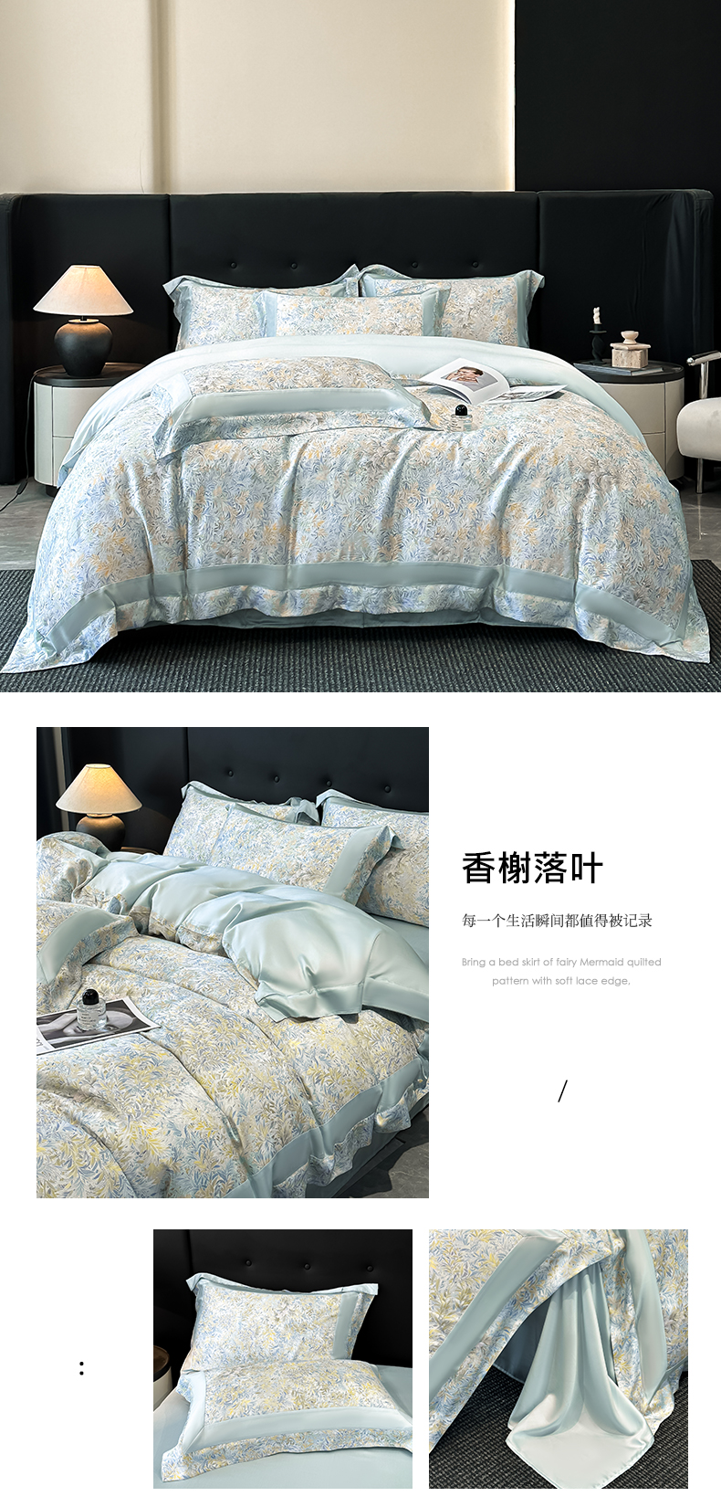 博纳家纺 2025新款50兰精天丝大宽边撞色拼角高级简奢款凉感天丝数码印花四件套(已在兰精公司备案) 香榭落叶