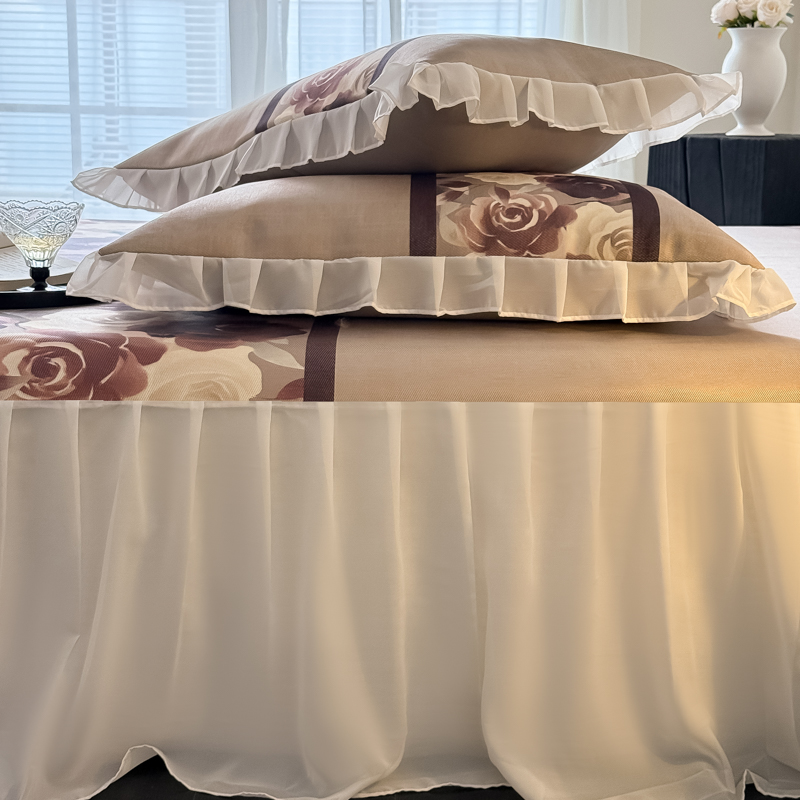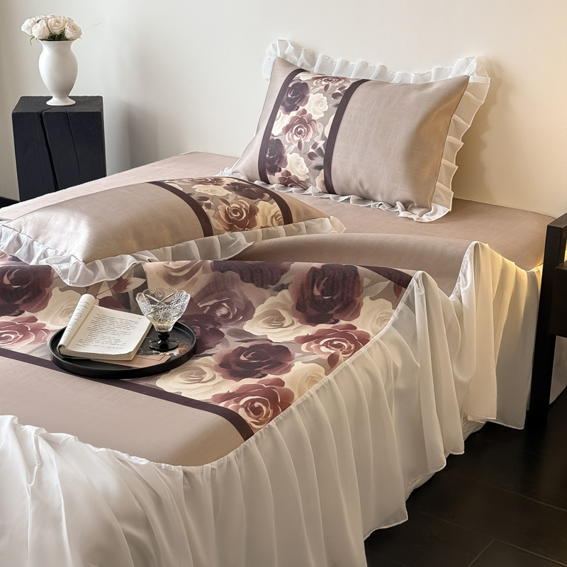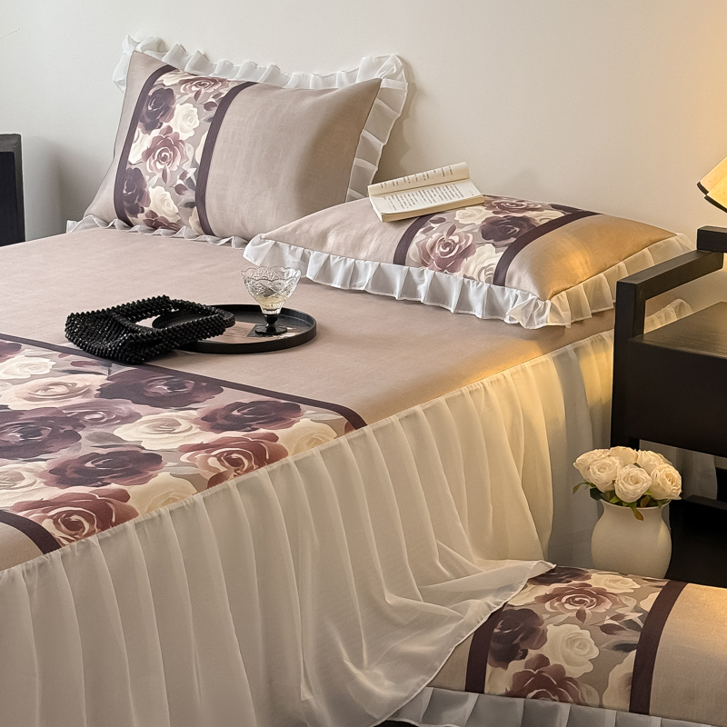 懒猫家纺 2025春夏新款高精密800D数码印花冰丝雪纺床裙款凉席 风华