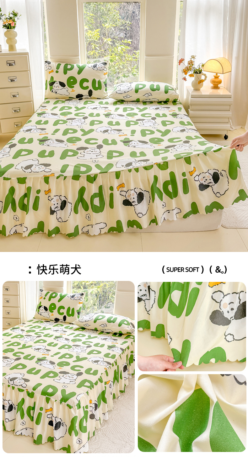 • 91家纺网 家纺一手货源 找家纺 莎臣豹 2025新款植物羊绒单品单件单床裙可配床裙三件套 快乐萌犬