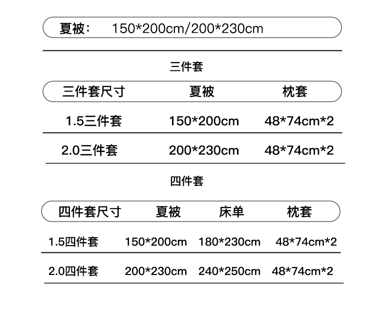 2.0单夏被+2.4*2.5床单+一对枕套 | ¥165.00 |