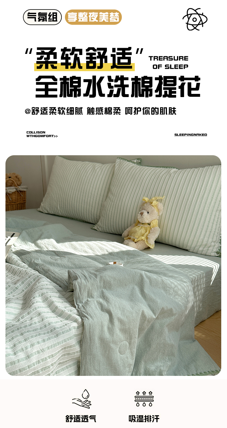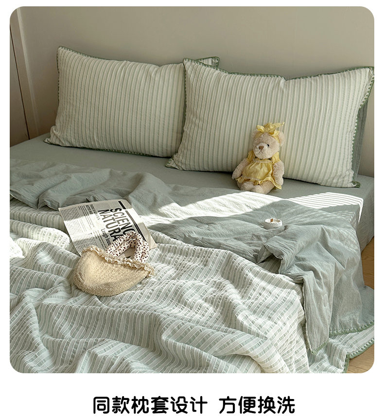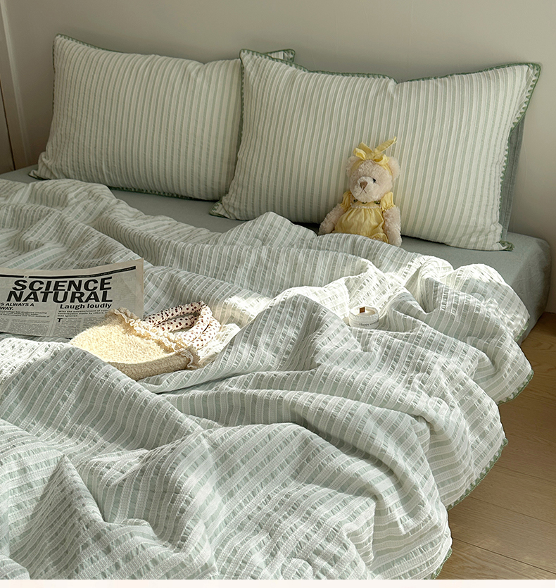 当前位置: 91家纺网 > 商品网购 > 床品套件 > 四件套 > 全棉普通四件套 > 曼町家居2025新款全棉水洗棉提花贝壳边夏被系列 薄荷绿