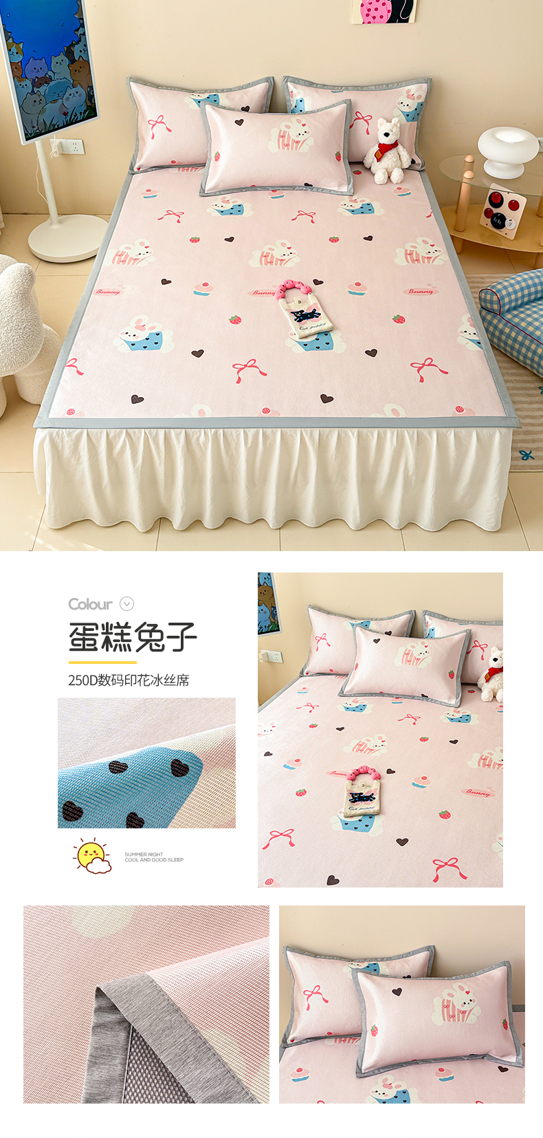 懒猫家纺 2025春夏新款250D数码印花冰丝席凉席席子 蛋糕兔子