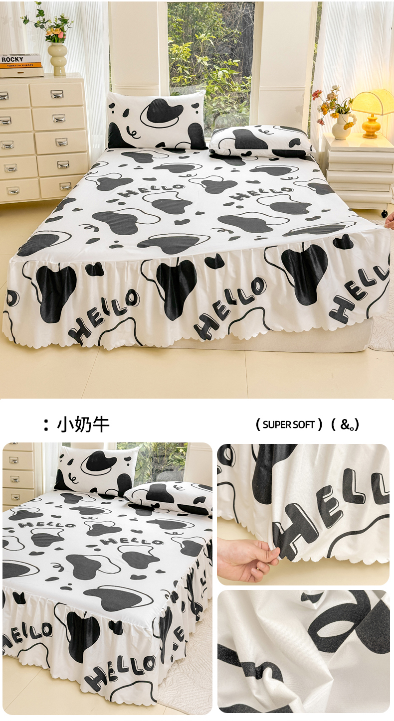 • 91家纺网 家纺一手货源 找家纺 莎臣豹 2025新款植物羊绒单品单件单床裙可配床裙三件套 小奶牛