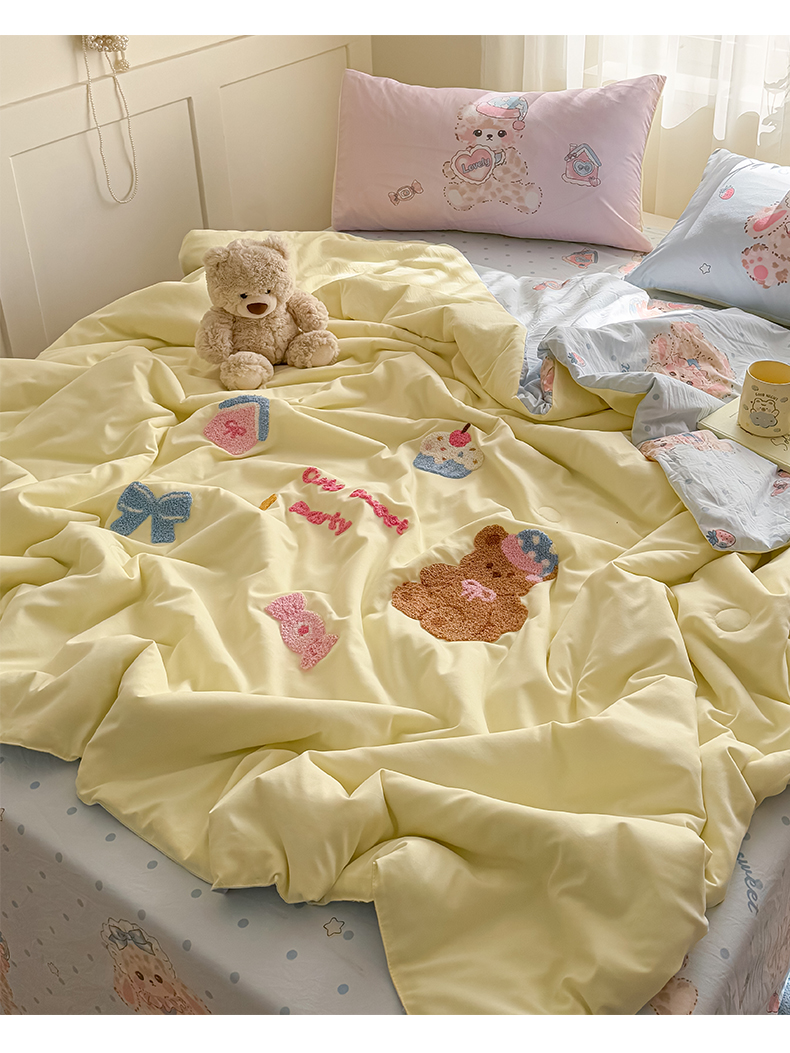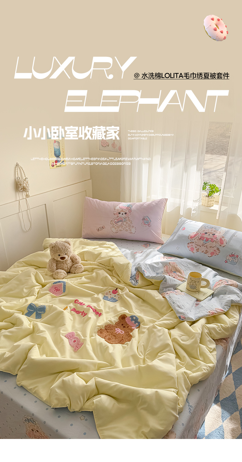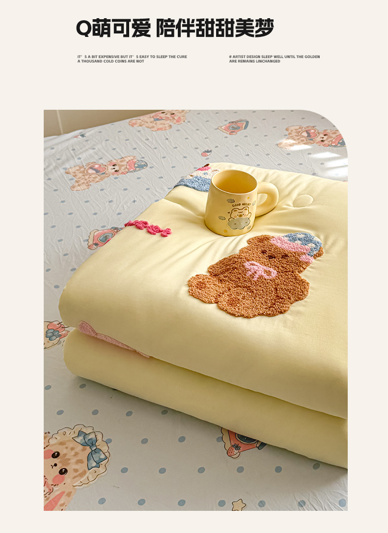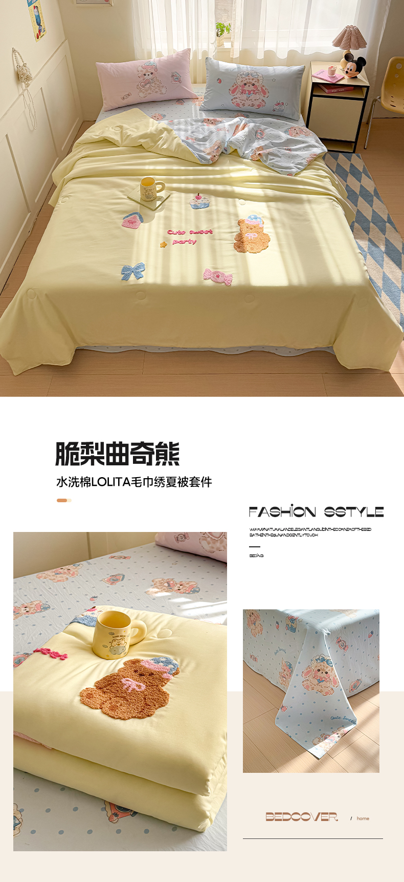 贝扬思 2025新款Lolita毛巾绣夏被套件 脆梨曲奇熊
